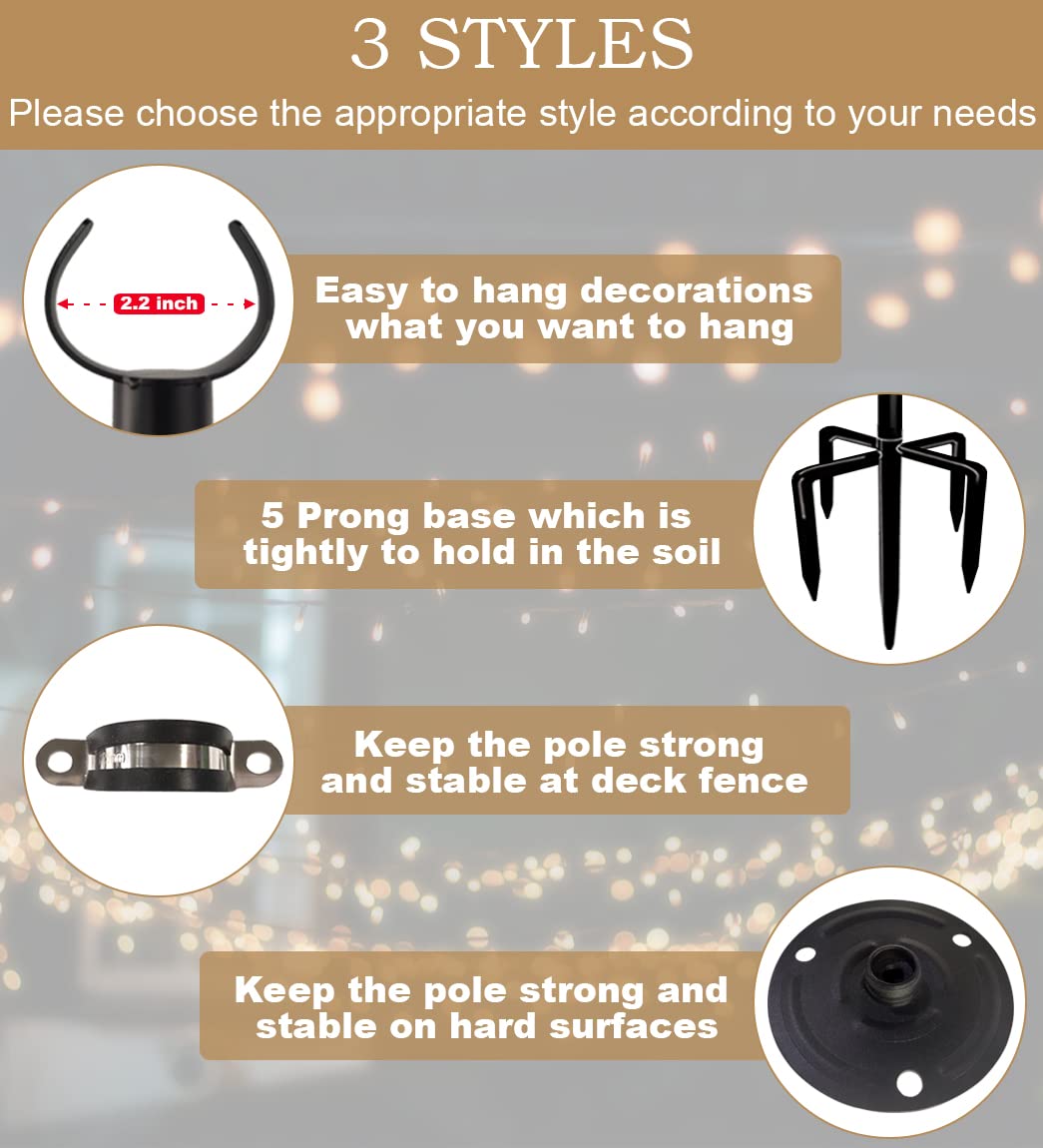 Q: Can these light poles hold different types of decorations?A: Absolutely! The Sprimden String Light Poles can support various decorations such as fairy lights, mason jars, wind bells, banners, and balloons, making them perfect for events like weddings, parties, and holidays.
