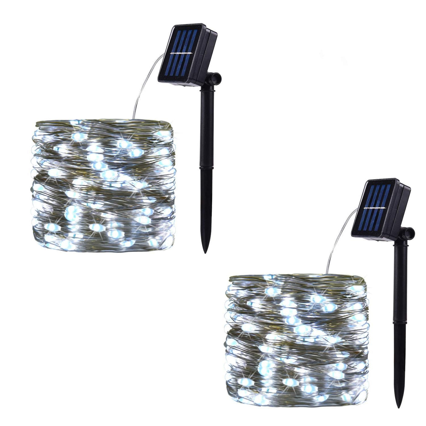 Sprklinlin 2 Pack 100 Led Solar Power Fairy Lights, 33Ft Outdoor Fairy Lights Waterproof Copper Wire 8 Modes Fairy Lights For Garden, Patio, Wedding, Party, Christmas, Home (White)