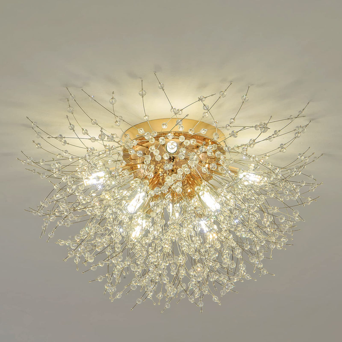 Sputnik Flush Mount Ceiling Light Fixtures, Modern Gold Crystal Firework Chandelier, 8-Light Close To Ceiling Lighting Fixtures For Bedroom Kitchen Hallway Entryway(H11.8'' X W21.5'')