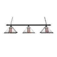 Q: What are the dimensions of the Square 3 Light Island?A: The dimensions of the Square 3 Light Island are 54.0 inches in length and 14.0 inches in width, making it a perfect fit for standard billiard tables.