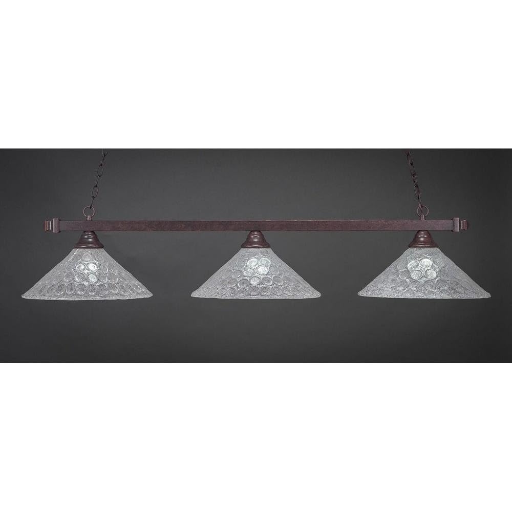 Q: What materials are used in the construction of this light fixture?A: The Square 3 Light Island is constructed from durable steel, and it features elegant Italian Bubble glass, providing both functionality and aesthetic appeal.