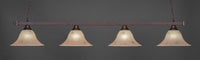 Collection: Square, Material: Steel, Finish Color: Bronze, Width: 14", Height: 11.25", Length: 74", Chain Length: 120", Lamping Type: Incandescent, Number Of Bulbs: 4, Wattage: 150 Watts, Dimmable: No, Moisture Rating: Dry Rated, Desc: Square 4 Light Bar Shown In Bronze Finish With 14" Italian Marble Glass,