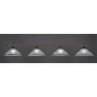 Collection: Square, Material: Steel, Finish Color: Bronze, Width: 16", Height: 10.75", Length: 75.5", Chain Length: 120", Lamping Type: Incandescent, Number Of Bulbs: 4, Wattage: 150 Watts, Dimmable: No, Moisture Rating: Dry Rated, Desc: Square 4 Light Bar Shown In Bronze Finish With 16" Italian Bubble Glass,