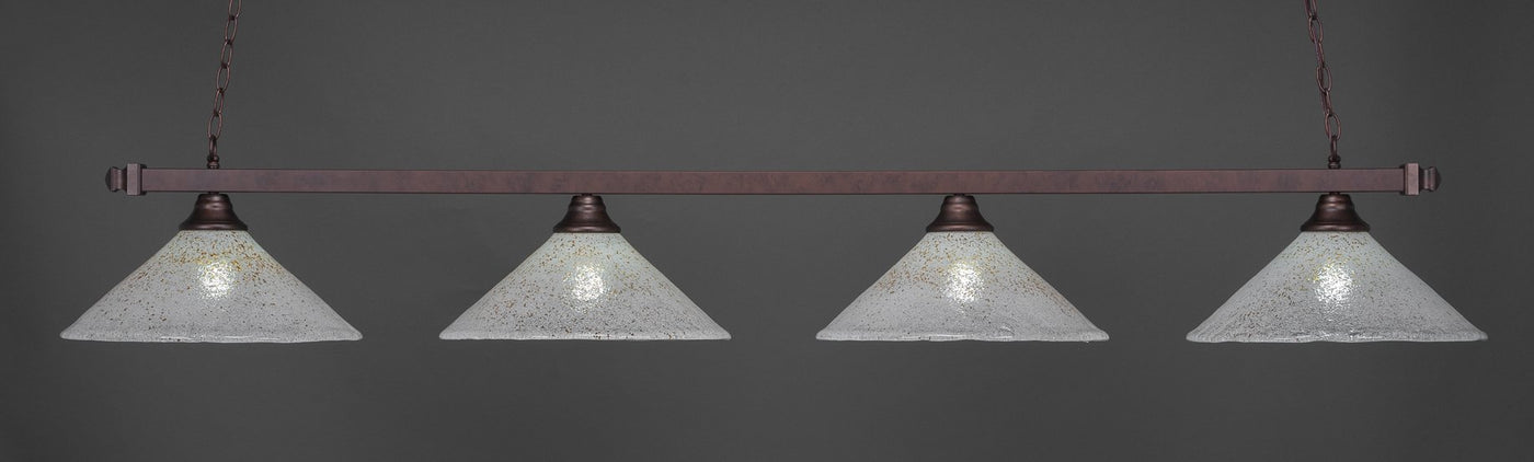 Collection: Square, Material: Steel, Finish Color: Bronze, Width: 16", Height: 10.75", Length: 75.5", Chain Length: 120", Lamping Type: Incandescent, Number Of Bulbs: 4, Wattage: 150 Watts, Dimmable: No, Moisture Rating: Dry Rated, Desc: Square 4 Light Bar Shown In Bronze Finish With 16" Italian Bubble Glass,