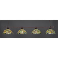Collection: Square, Material: Steel, Finish Color: Bronze, Width: 16", Height: 12", Length: 75", Chain Length: 120", Lamping Type: Incandescent, Number Of Bulbs: 4, Wattage: 150 Watts, Dimmable: No, Moisture Rating: Dry Rated, Desc: Square 4 Light Bar Shown In Bronze Finish With 16" Crescent Art Glass,