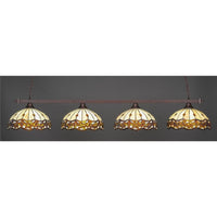 Collection: Square, Material: Steel, Finish Color: Bronze, Width: 16", Height: 12.5", Length: 76.5", Chain Length: 120", Lamping Type: Incandescent, Number Of Bulbs: 4, Wattage: 150 Watts, Dimmable: No, Moisture Rating: Dry Rated, Desc: Square 4 Light Bar Shown In Bronze Finish With 16" Roman Jewel Art Glass,