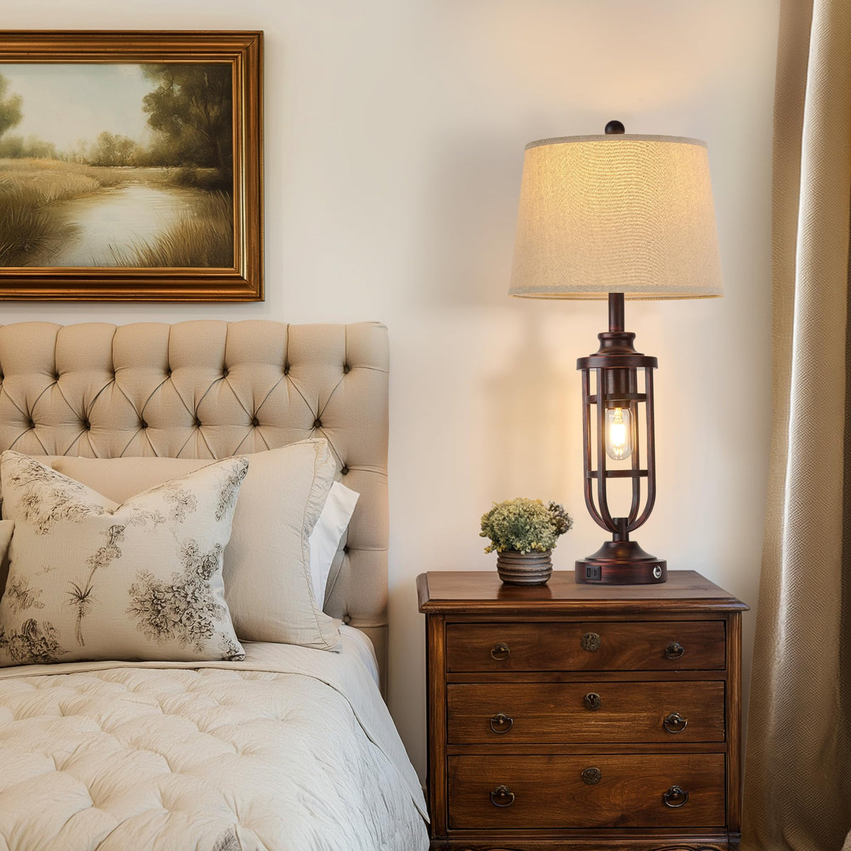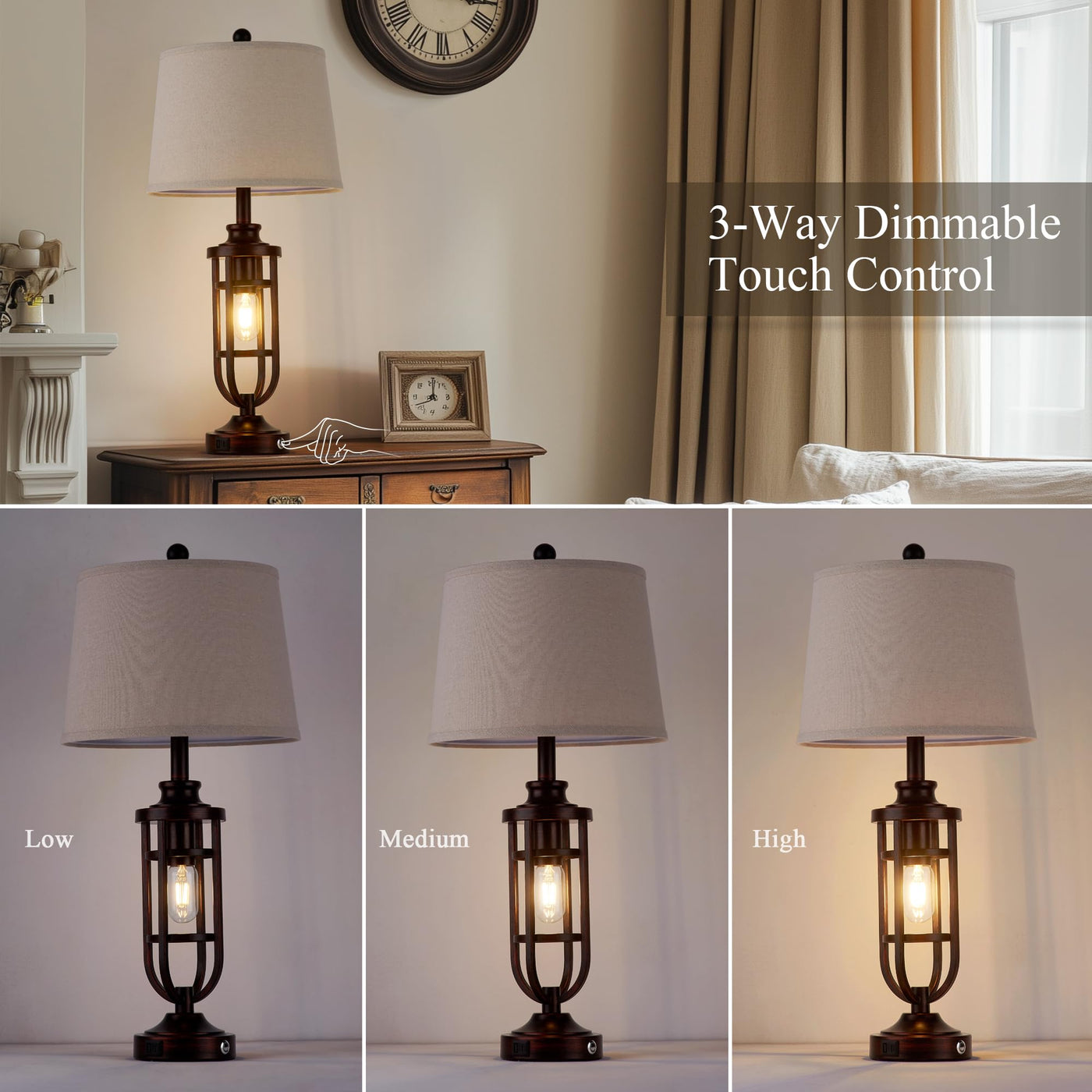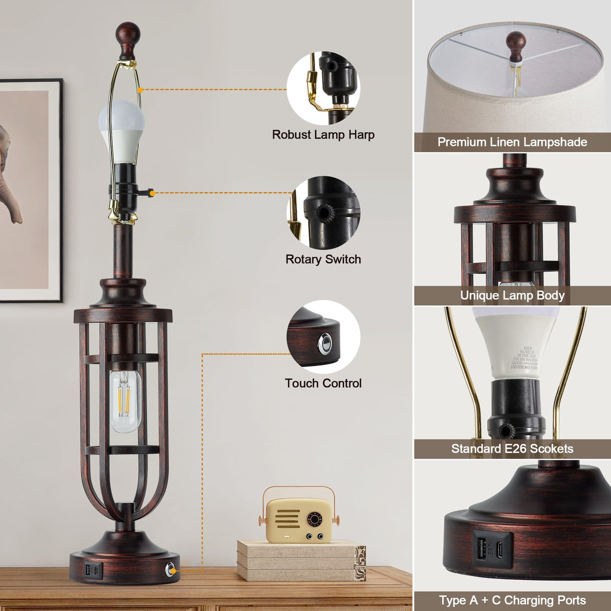 Srjjrs 28'' Table Lamps For Living Room Set Of 2, Farmhouse Bedroom Lamps For Nightstand With Usb A+C, Rustic Bedside Lamps For