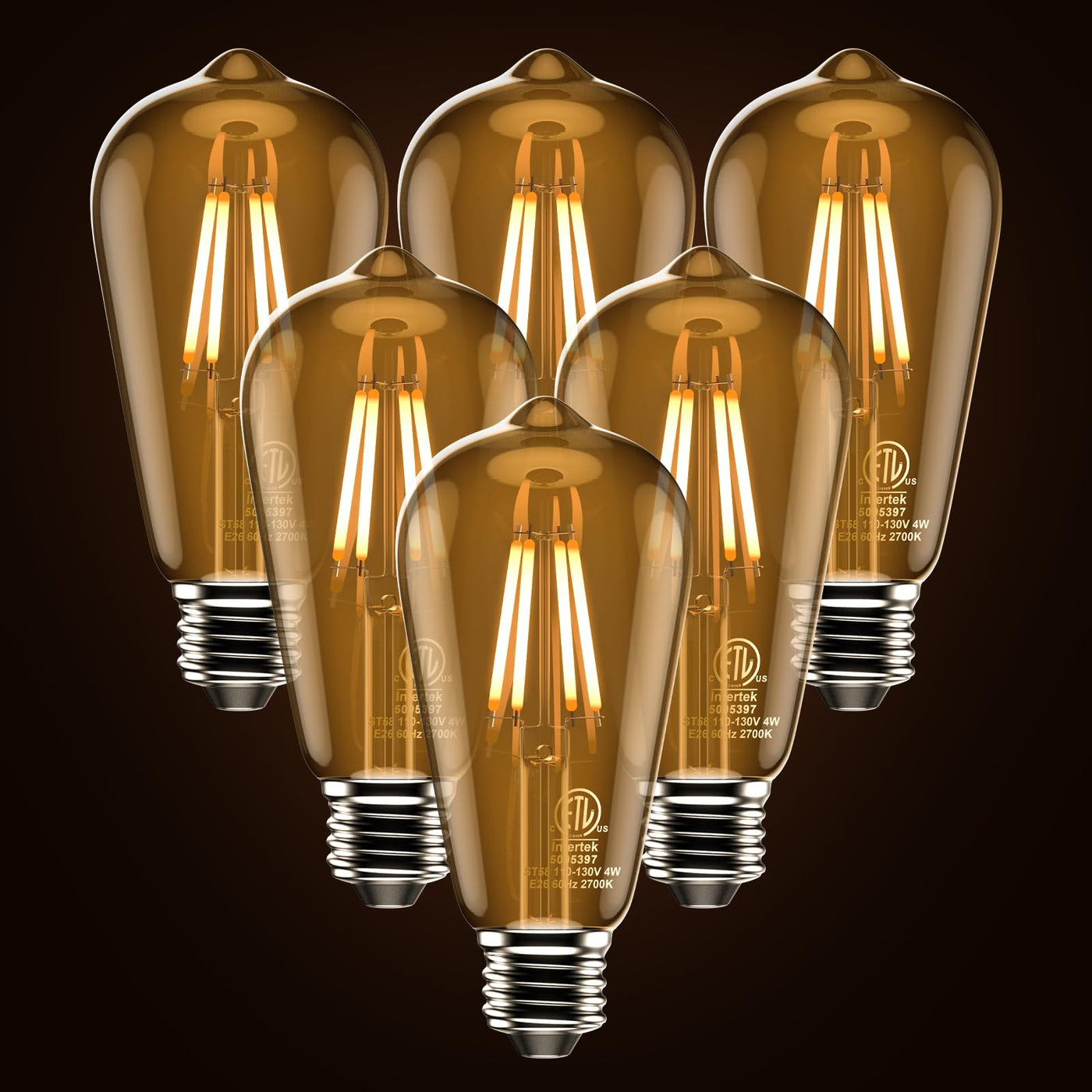 St58 Antique Led Filament Light Bulbs, Led Dimmable Edison Light Bulbs 4W, 2700K Warm White (Amber Glass) E26 Base Pack Of 6