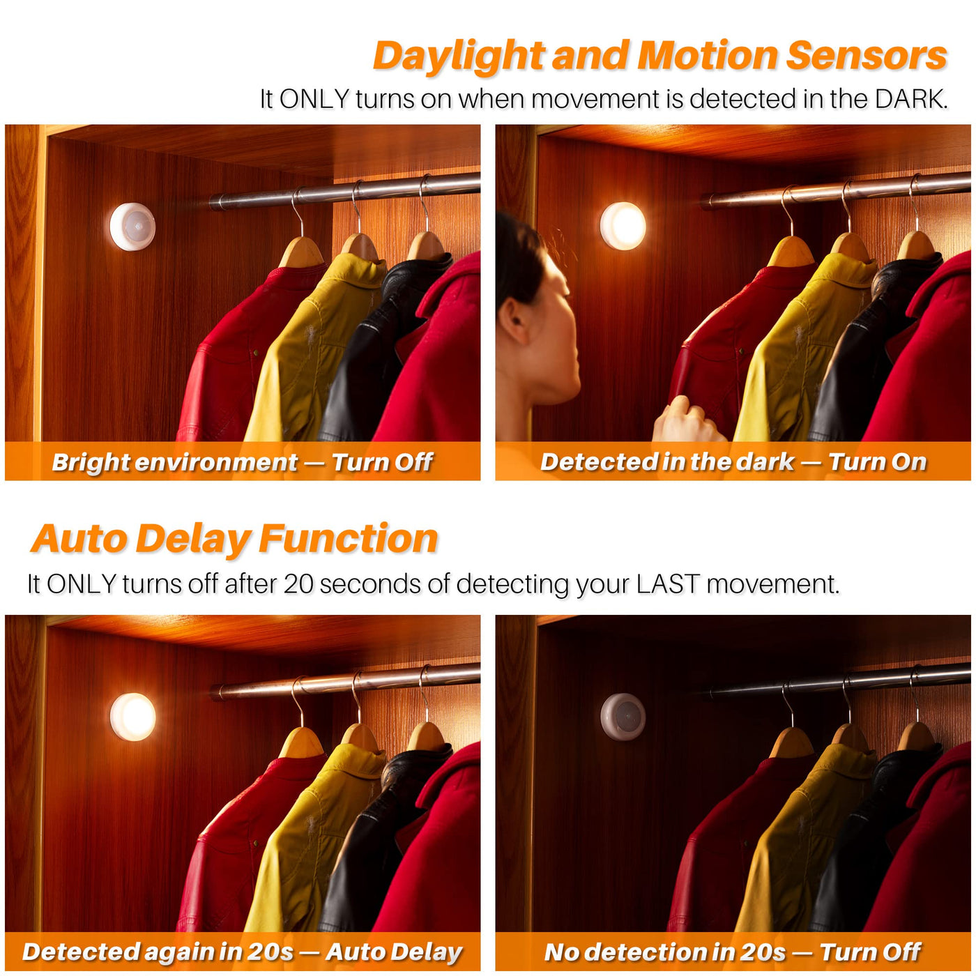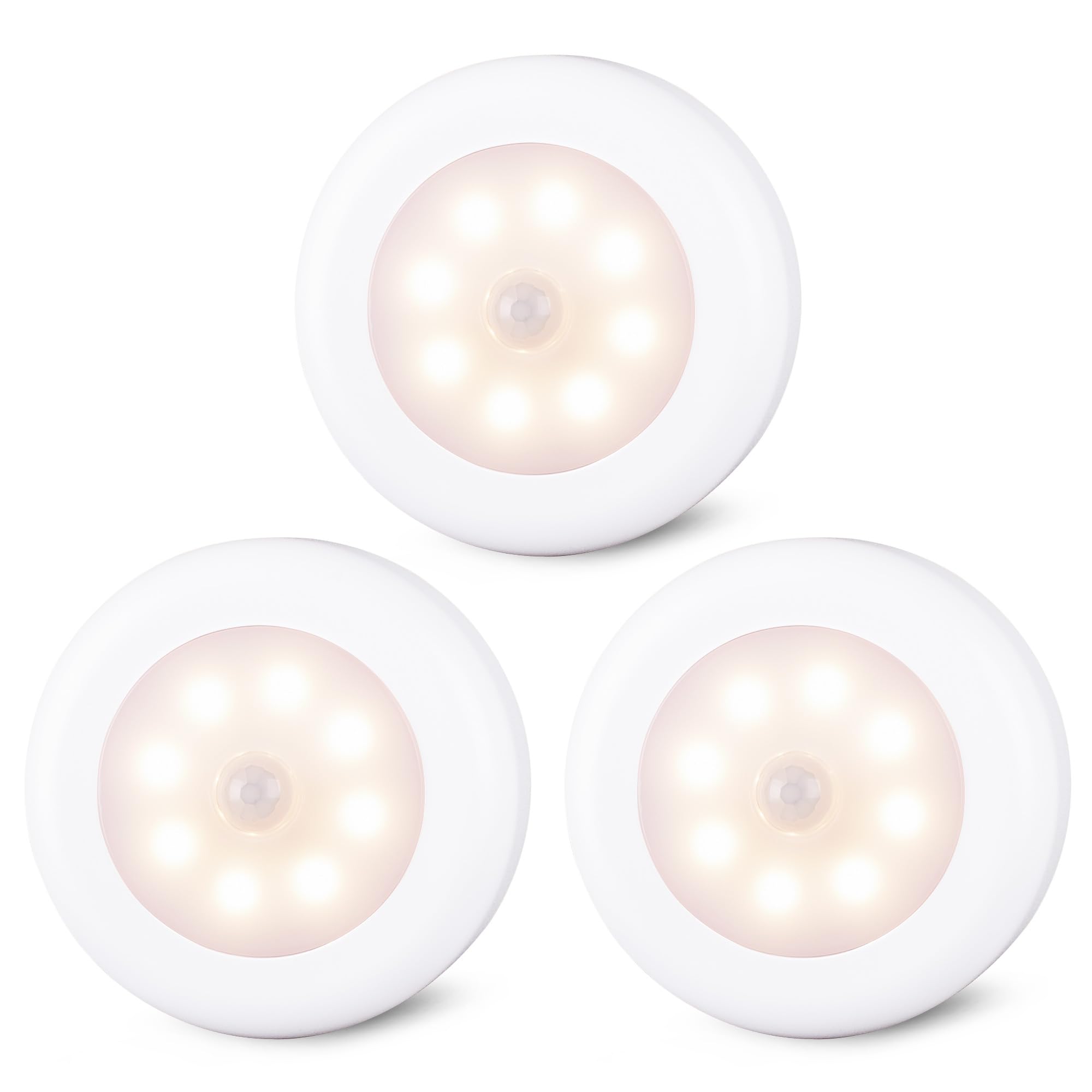 STAR-SPANGLED Motion Sensor Lights Indoor, High CRI Stick on Puck Lights Battery Operated (Warm White - 8cm, AA Battery Operated