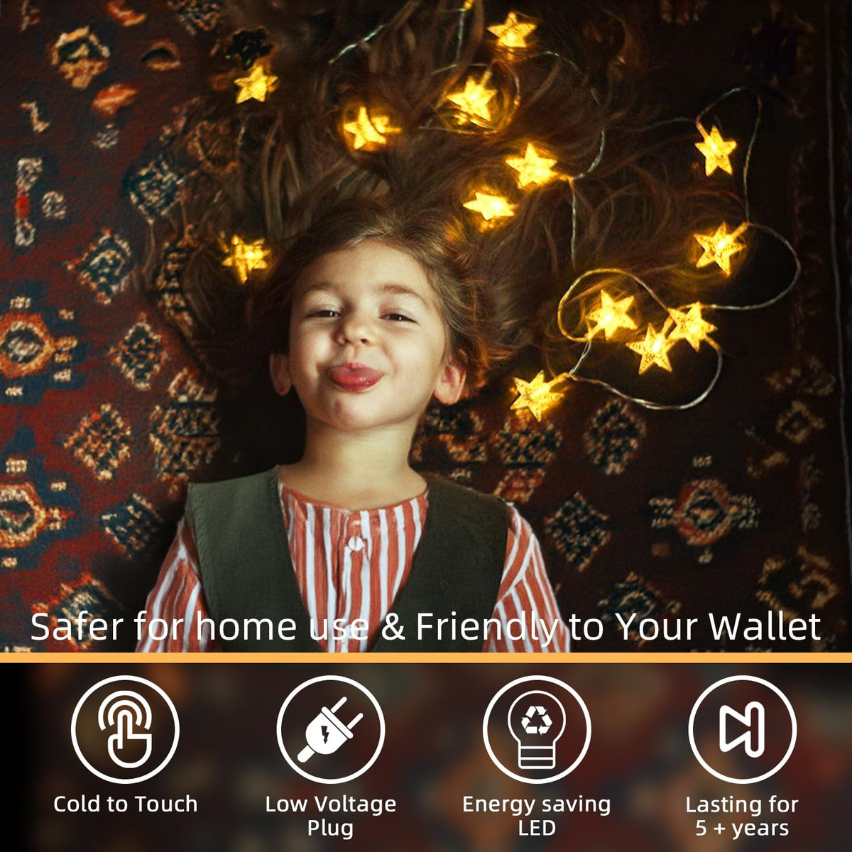 Q: Do these lights require batteries or are they plug-in?A: The Star String Lights are powered by a reliable plug-in system, eliminating the need for batteries. This provides consistent and bright illumination, while the low voltage plug ensures safety, especially for families with kids.