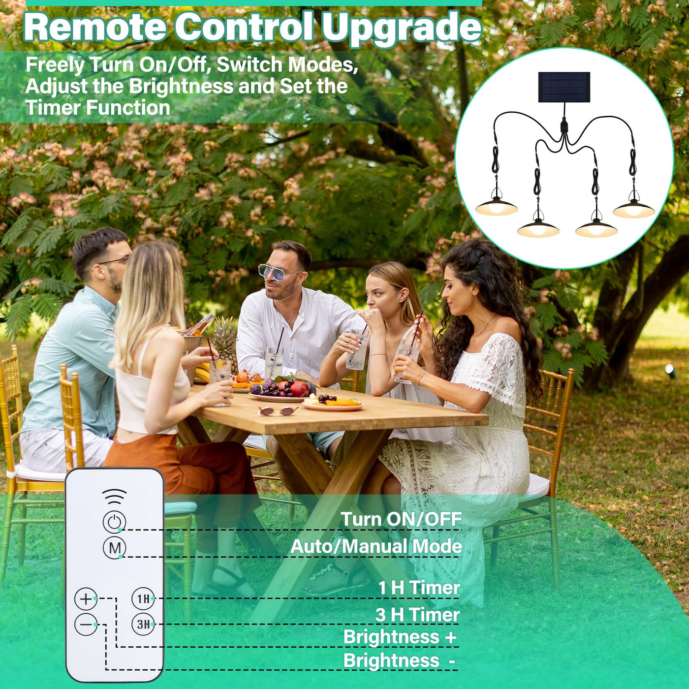 Starnoontek 4 Heads Pendant Solar Shed Light, Ip65 Waterproof Warm White Shed Indoor Lights With Remote Control For Patio Garden