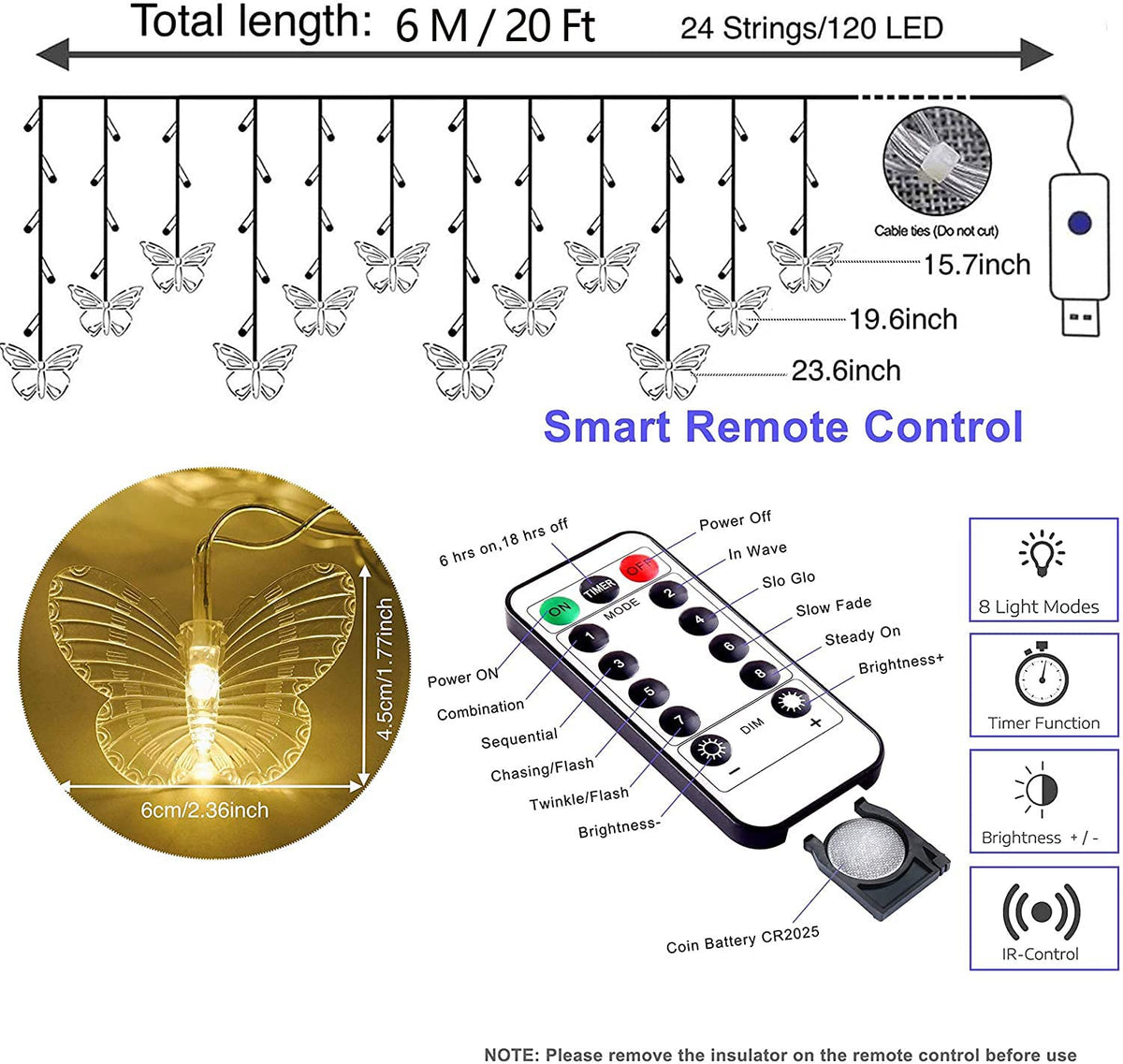 Quantity of lights: 120 bright lights (24 butterfly-shaped lights)