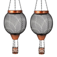 Starsoul 2 Pc Cage Hot Air Balloon Solar Lantern With Flame Glass Outdoor Hanging Hot Air Balloon Solar Light Lamp Waterproof Ga