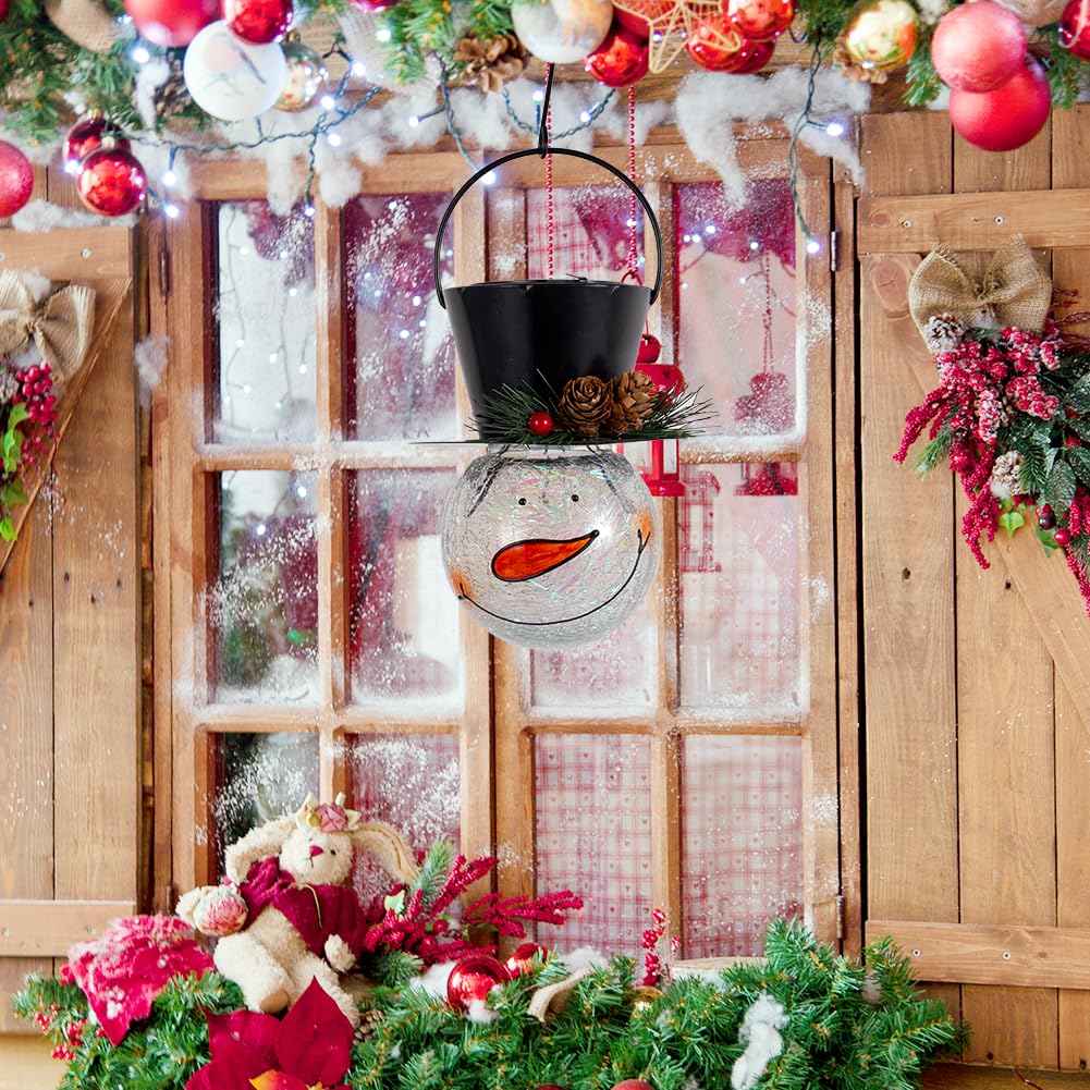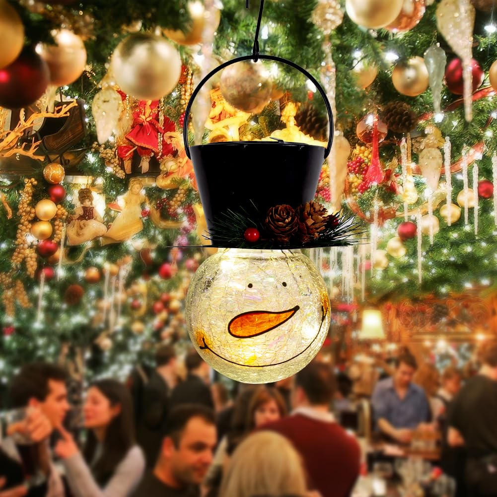 Starsoul Snowman Solar Lantern - Waterproof Decorative Glass Light for Garden, Patio, Yard, Xmas Holiday - Pinecone Model SY49062115