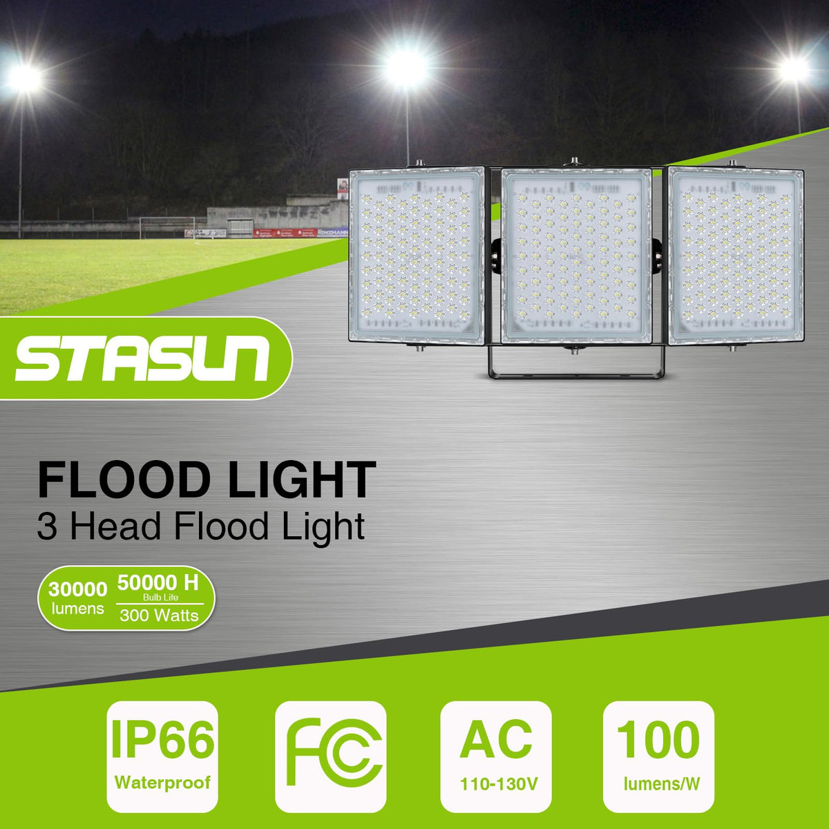- **Waterproof and Weather-Resistant**: Rated IP66 for waterproofing, the STASUN LED floodlight is suitable for various outdoor applications, including stadiums, driveways, and commercial properties. It's designed to withstand harsh weather conditions, ensuring reliable operation year-round.