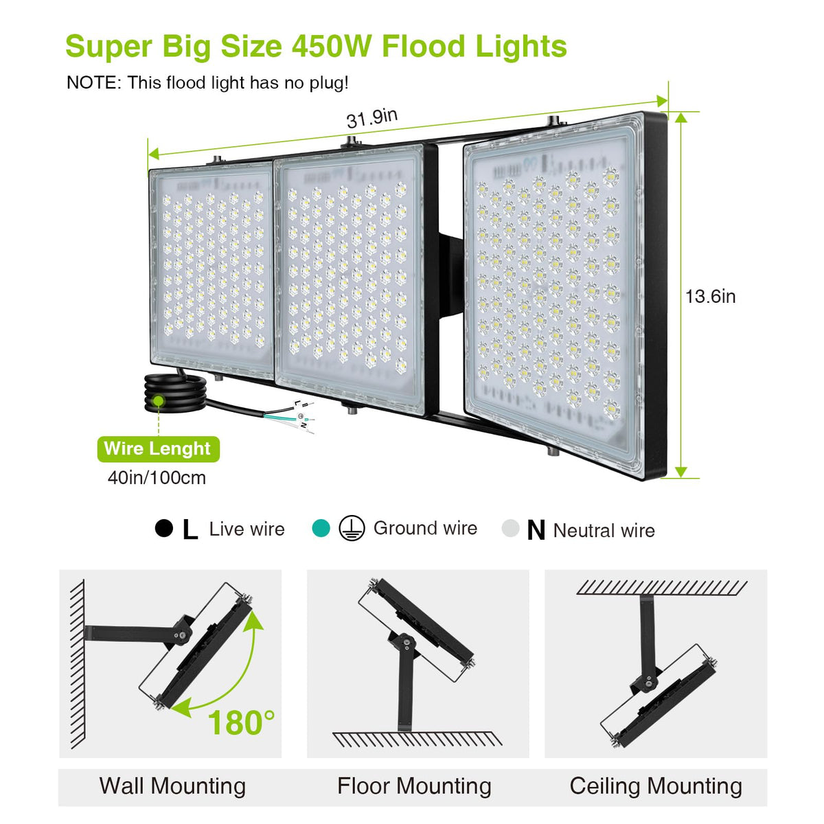 Illuminate your outdoor spaces with the STASUN 450W LED Floodlight, designed to deliver unparalleled brightness and efficiency. This powerful floodlight not only enhances visibility but also provides a sense of security, making it an essential addition to any home or commercial property.