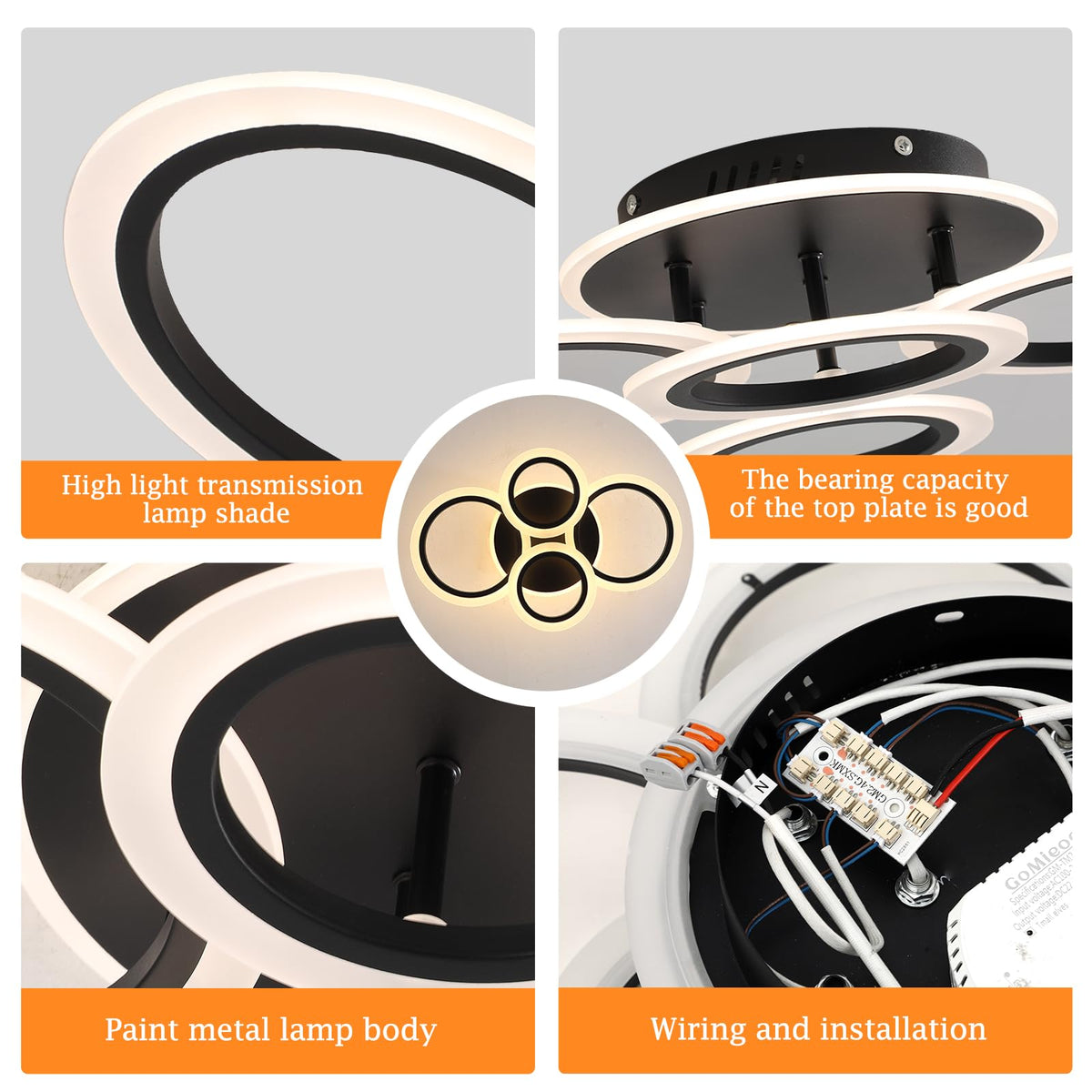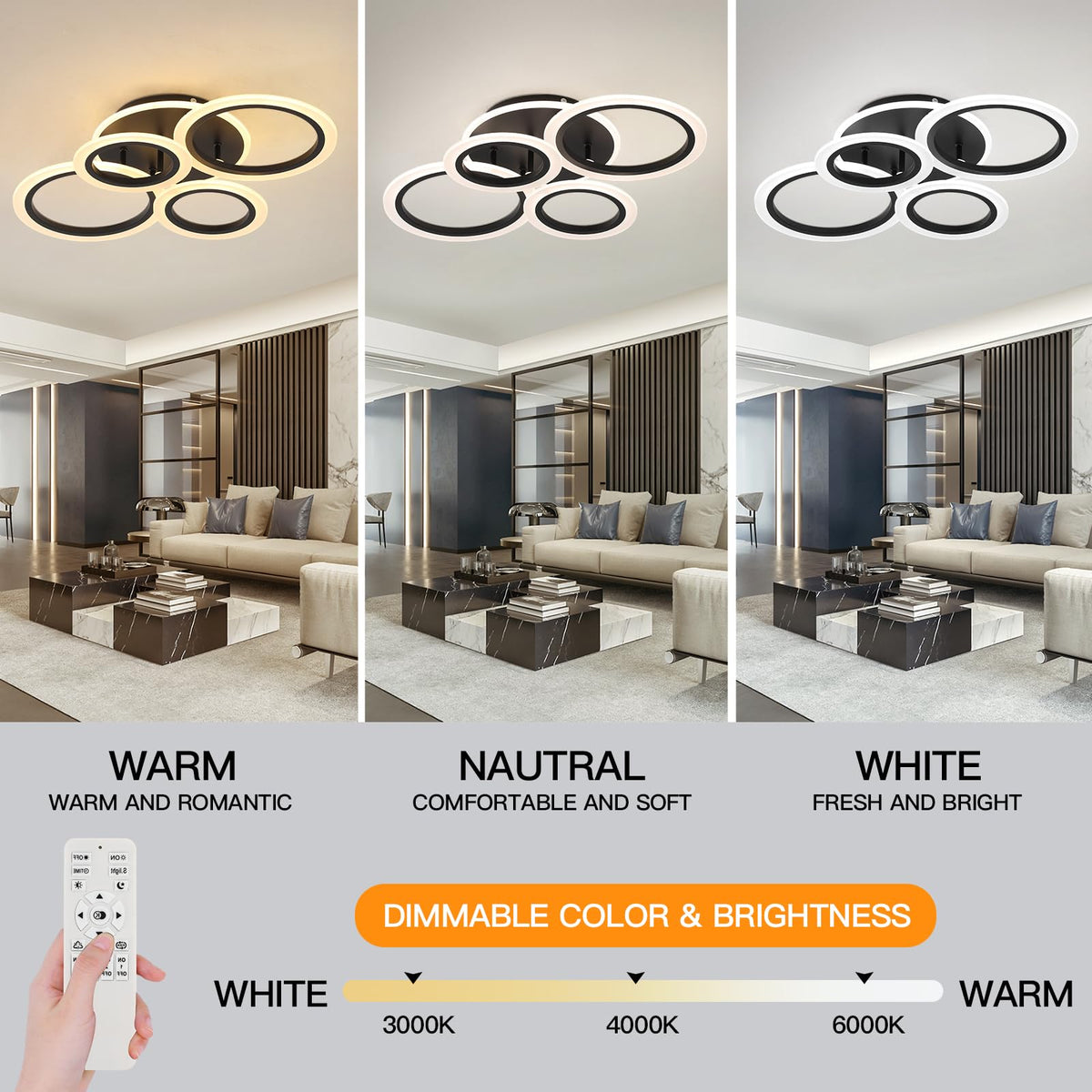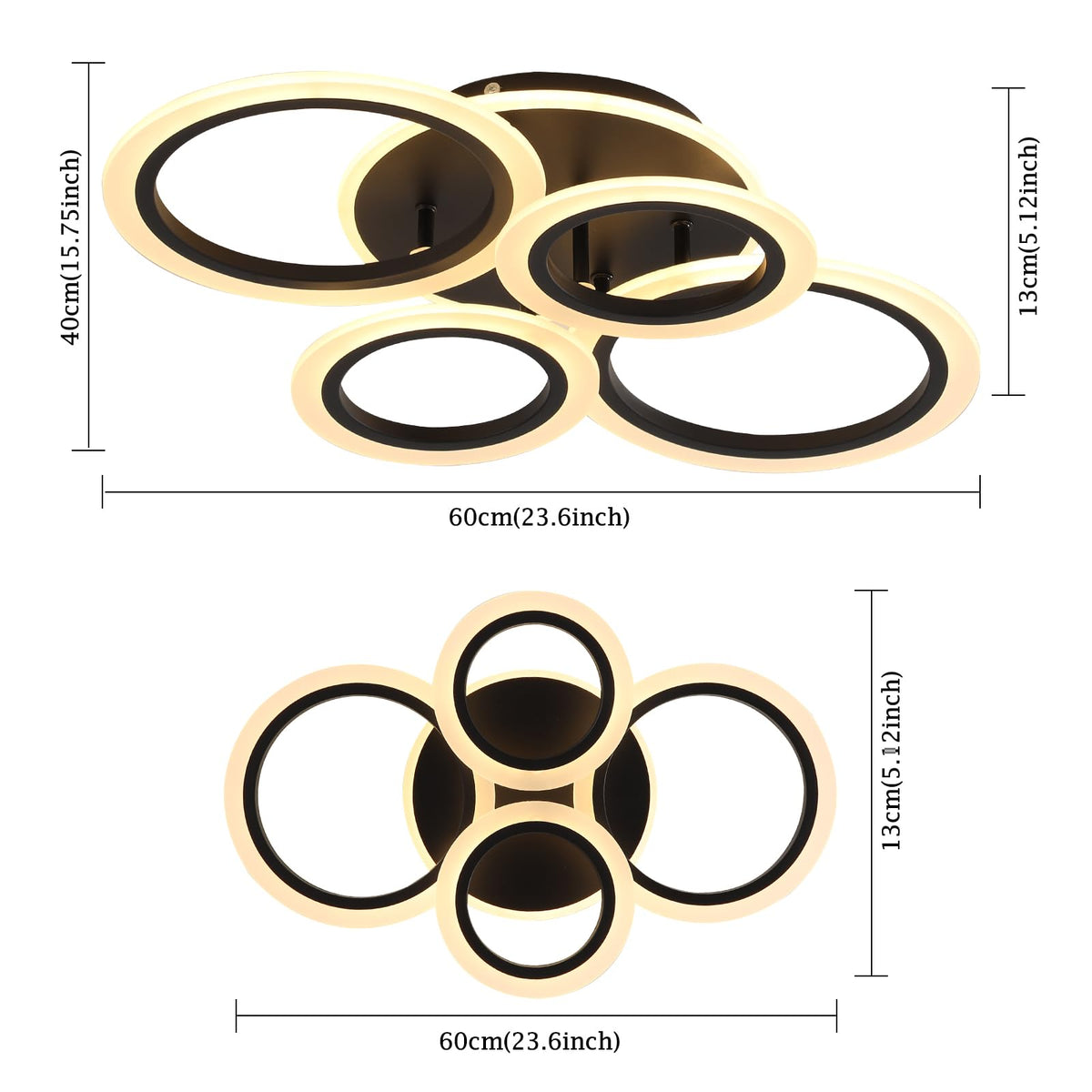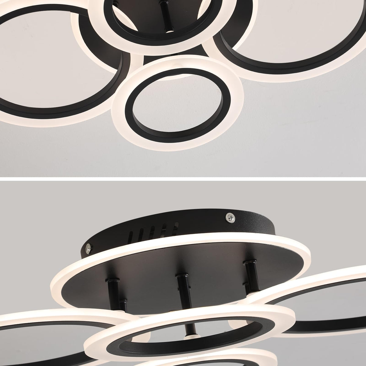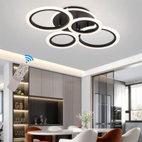 Stch Modern Led Ceiling Light, Dimmable 3000K/4000K/6500K, Black 4 Rings Flush Mount Ceiling Lamp, Ceiling Light Fixture With Re