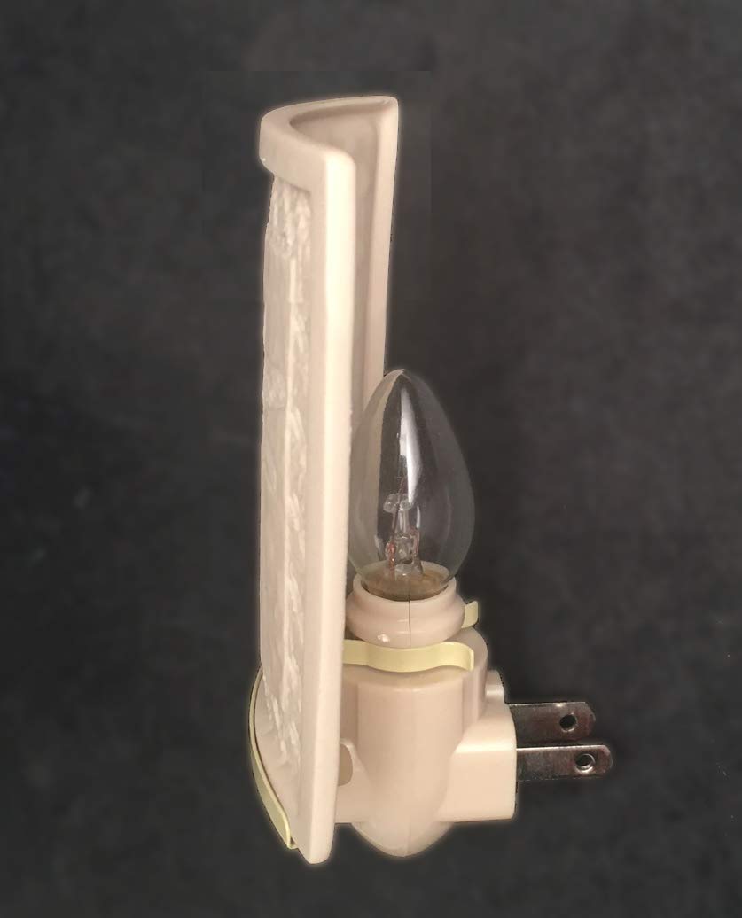 This is a ''lithophane''; a thin translucent porcelain night light, made using a lost art from the 1800's. When lit from behind, the light shining through the different thicknesses of the carving causes a highly detailed image to appear in front, almost magically. As you see, the illuminated image is so detailed, that it has a totally photographic quality to it! In addition, the relief of the carving gives the image a 3 dimensional quality when seen in person. To make them, we start by carving the image in a translucent wax, with the wax lit from behind. We then take a plaster mold of this engraving, and we then cast a fine porcelain clay into this mold. We then kiln fire the porcelain to 2300 degrees F. to achieve it's translucency and durability. Lithophanes were invented in France in 1827, and were popular throughout Europe till the early 1900's. They mysteriously faded from popularity with the advent of electricity, which is ironic as they look way better with electric light than candles. We first started making them 32 years ago by reproducing the antique ones. We eventually learned how to engrave our own originals, and this has been our specialty ever since. Our lithophanes truly make for a beautiful and practical piece of art that you will use daily for year after year! This beautiful image of a steam train rolling down the tracks will captivate any collectors' heart!