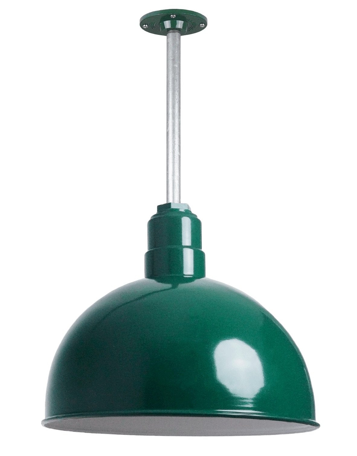 Steel Lighting Co. Green Rose Bowl Pendant - 15" Dome, 12" Stem, Heavy Duty Steel, Made In Usa