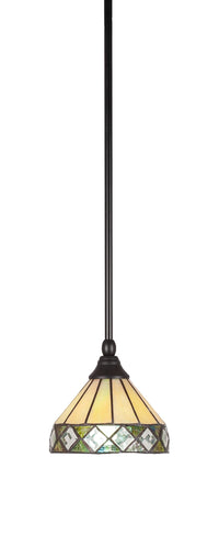 (23-MB-9405) Stem Mini Pendant With Hang Straight Swivel In Matte Black Finish With 7" Diamond Peak Art Glass. Rated for: Dry location. Light Bulb Data: Blacks 1 E26 watt. Bulb included: No.