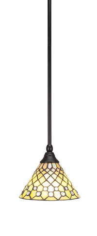 (23-MB-9415) Stem Mini Pendant With Hang Straight Swivel In Matte Black Finish With 7" Starlight Art Glass. Rated for: Dry location. Light Bulb Data: Blacks 1 E26 watt. Bulb included: No.