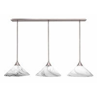 (48-BN-2169) Stem 3 Light Linear Pendalier With Hang Straight Swivels In Brushed Nickel Finish With 16" Onyx Swirl Glass. Rated for: Dry location. Light Bulb Data: 3 Medium 100 Watt. Bulb Included: No.