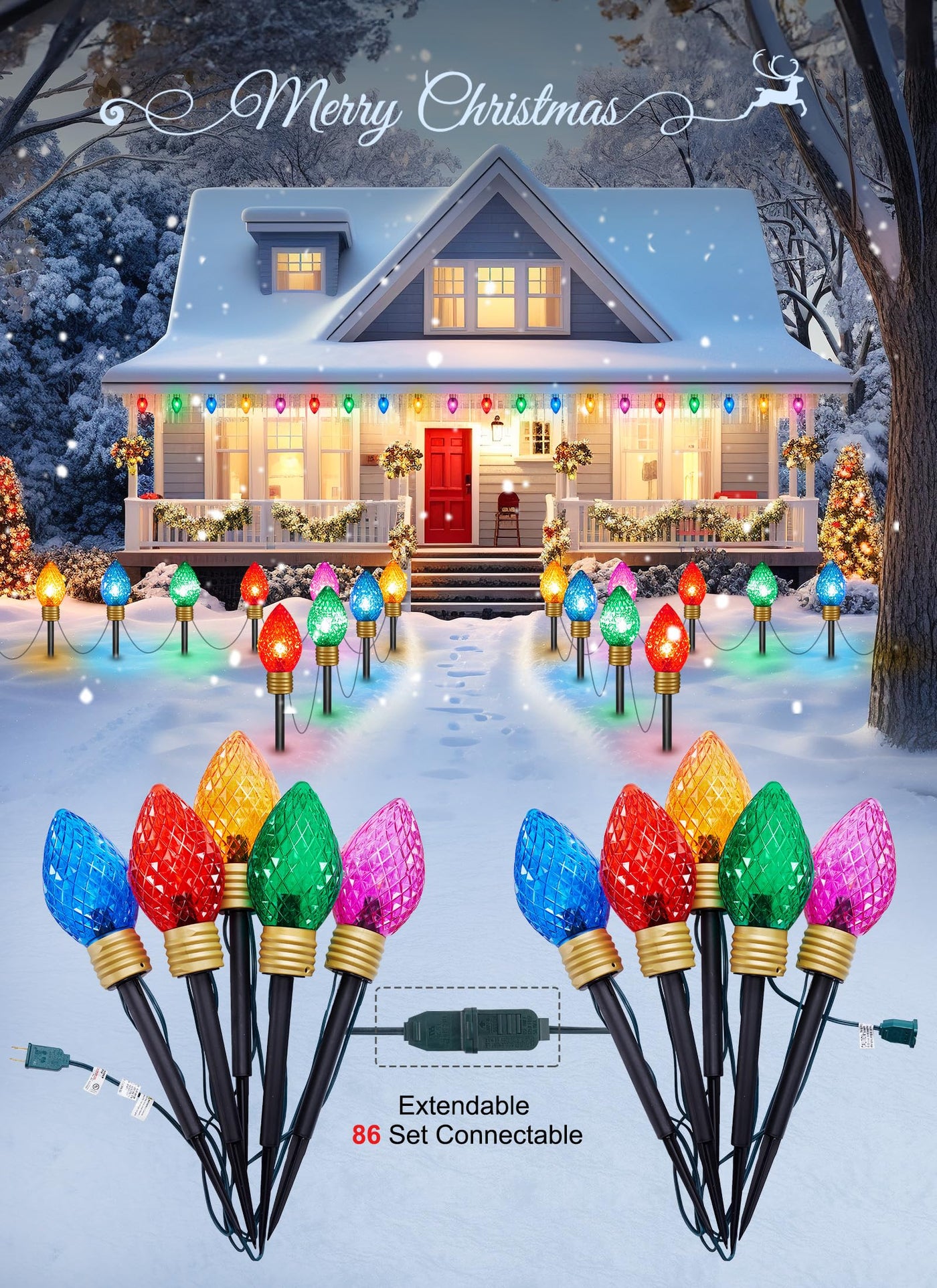 Q: Can I connect multiple strands of these Christmas lights together?A: Yes, you can connect up to 86 strands of the Strawberry Jumbo C9 Christmas Pathway Lights to optimize lighting for larger areas.