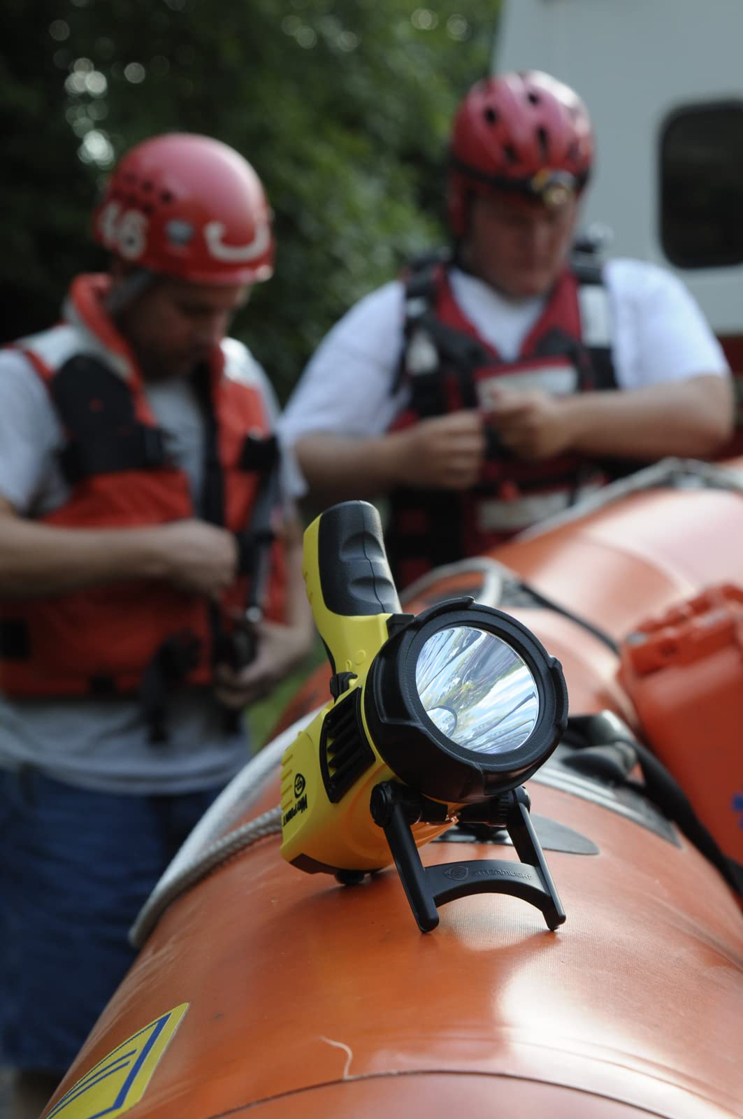 Q: What are the different lighting modes available on the Waypoint spotlight?A: The Waypoint spotlight features three lighting modes: High, Low, and Emergency Signal. The Emergency Signal mode can run for up to 82 hours, providing versatile options for various situations.