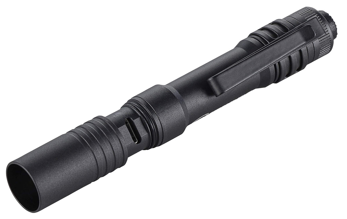 Q: What accessories are included with the Streamlight MicroStream flashlight?A: The Streamlight MicroStream flashlight comes with a removable pocket clip, a 5-inch USB charging cable, and a high-strength lanyard for easy carrying and accessibility.