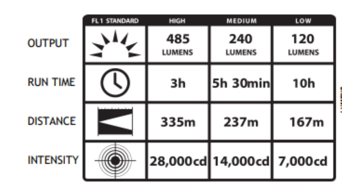 Compact and powerful, the Streamlight PolyStinger LED rechargeable flashlight offers 3 microprocessor controlled intensity modes, strobe mode and the latest in power LED technology. The combination of rechargeable batteries and the C4 LED results in one of the lowest operating costs of any flashlight made. High for a high lumen, far-reaching beam: 485 lumens; 335m beam distance; 28,000 candela; runs 3 hours. Medium for bright light and longer run time: 240 lumens; 237m beam distance; 14,000 candela; runs 5.5 hours. Low provides a less intense beam and extended run time: 120 lumens; 167m beam distance; 7,000 candela; runs 10 hours. Super-tough, non-conductive nylon polymer with non-slip rubberized comfort grip. Multi-function, easy access head mounted push-button switch designed for extremely long life; tested at 1 million actuations. IPX4 Rated for water resistant operation. 3 Meter impact resistance tested. Serialized for positive identification. Fits existing Streamlight Stinger chargers and new Smart chargers. Includes 120-Volt AC/12-Volt DC Smart Charger and 2 Holders.