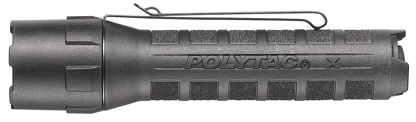 The PolyTac X USB is a rechargeable and bright 11,485-candela 600-lumen tactical flashlight that features a Rocky Stipple grip texture for tough working conditions. It casts an impressive 205-meter beam and runs for about 3.50 hours on high. There is a medium and low setting as well as a strobe setting for signaling or disorienting. The PolyTac X USB features a multi-function push-button tail switch that allows for one-handed operation. Streamlight’s TEN-TAP programming is available on the. PolyTac X which allows users to select one of three different programs. The PolyTac X USB is waterproof to 1m for 60 minutes, IPX7 rated, and has impact resistance up to 3 meters. The PolyTac X USB is perfectly designed for industrial, automotive, and tactical environments.