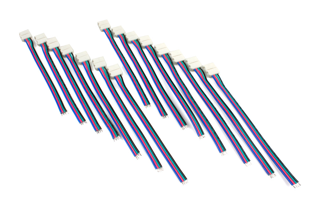 Save time and labor using the solderless power connectors for the multi-color LED strips and spools. Power connection has never been easier, simply open the connector, slide the LED strip inside and close the connector. Ten per package.