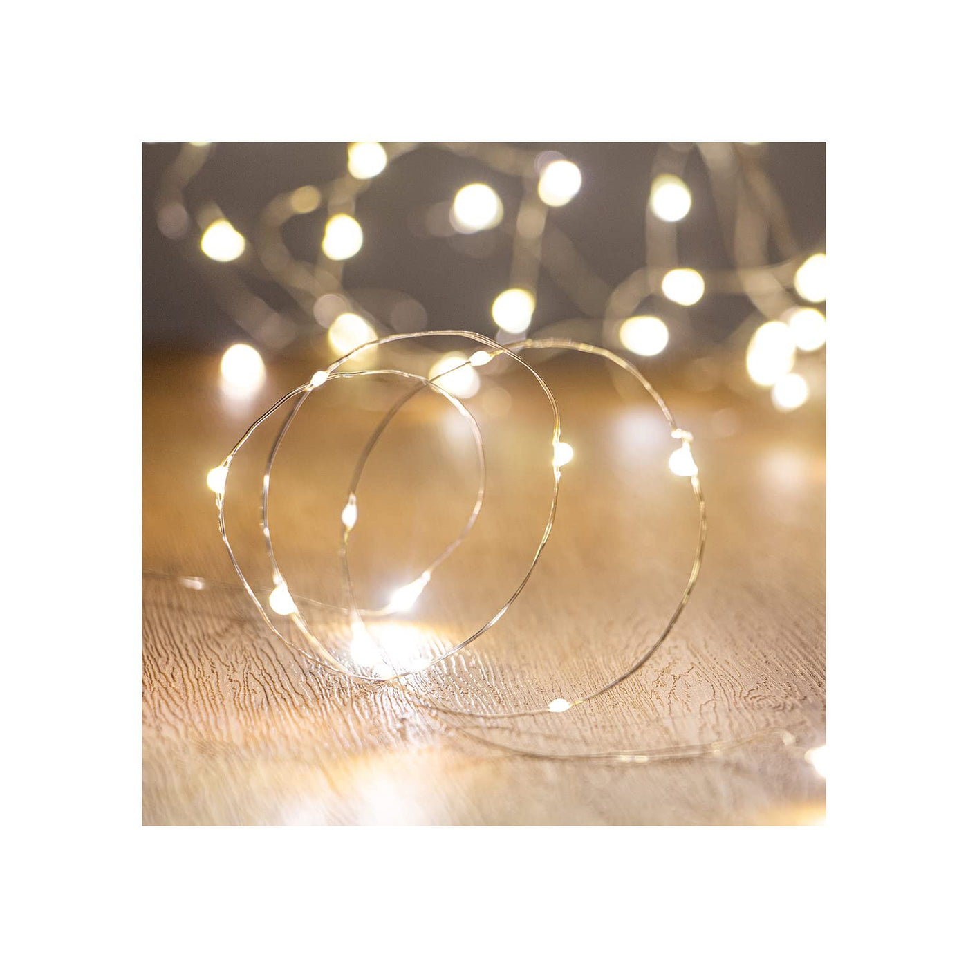 Features: 360 degrees sparkle for good effect. They create a warm and fairytale atmosphere for you. The 30 LEDs fairy lights are suitable for party, wedding, hotel, bar, street, garden, festivals, Christmas, Halloween, Carnival or other celebration occasions. They are made with a fine bendable sliver wire that can conform to any shape as beautiful decorations.Product details: Product name: micro 100 LEDs warm white string lights Cable color: silver LED space: 2 inches/ 5 cm LED lights color: Warm White LED lamp beads quantity: 100leds Battery type: 3 * AA battery (not included) Length: 32.8 Feet/10M Voltage: 4.5V Package: 1 * Micro LED warm white light strings with batteries box