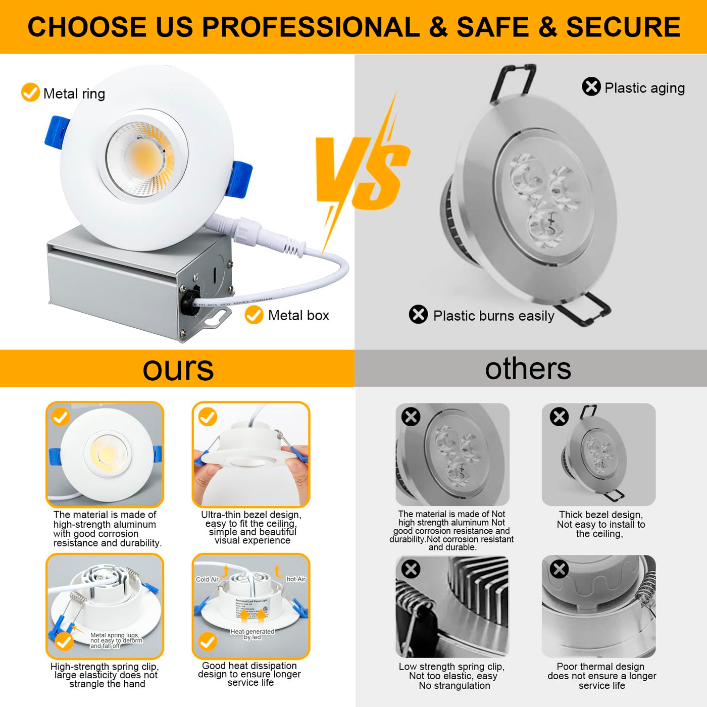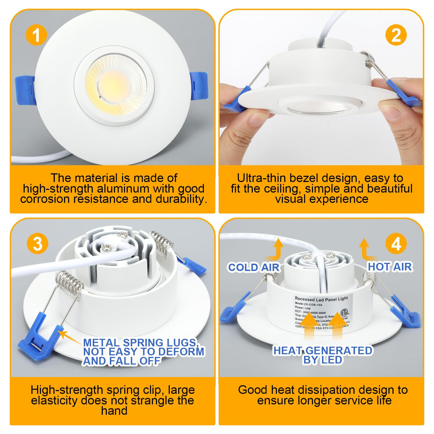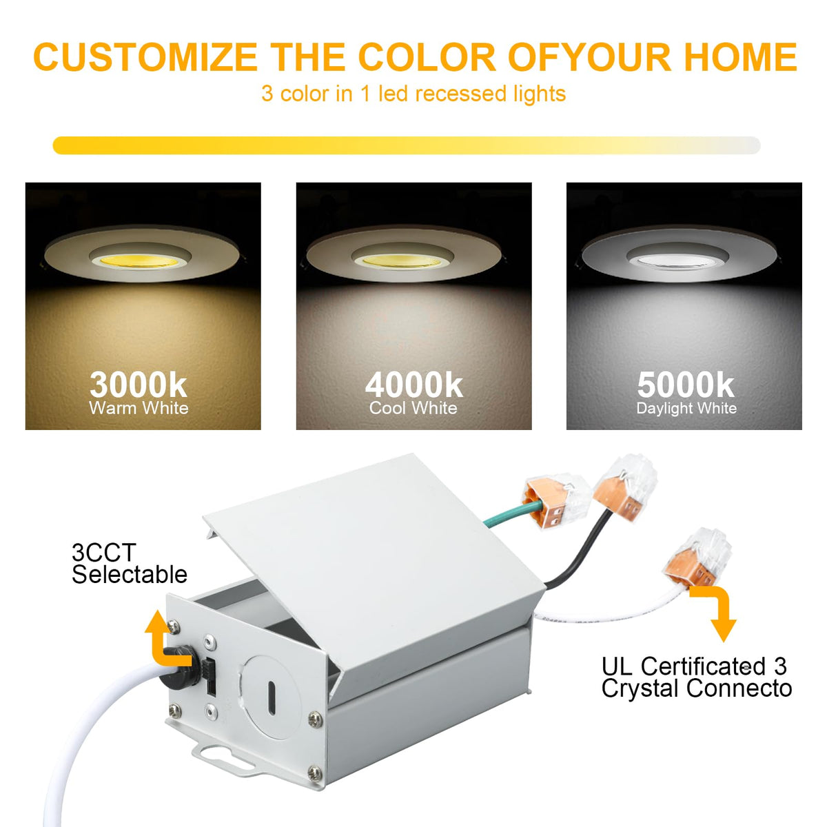 ? ?3 Color Temperature Selectable?: Sublimation 3 inch led recessed lights adopted the new design and with new chip,has high color rendering,and CRI>95.You can choice 3000K(warm white),4000K(cool white) or 5000K(daylight white),It means that you only need buy one fixture can enjoy three Color Temperatures. Meet your different requirements in different places. | ? ?Eco-friendly material and waterproof function?: The led recessed lights are made of thickened aluminum material, oxidized and colored, with high texture and can be used for a long time (about 300000+ hours). The product material is energy-saving and environmentally friendly, does not contain mercury and other environmentally harmful substances, and will not cause damage to the environment | ? ?Flexible Application & 30