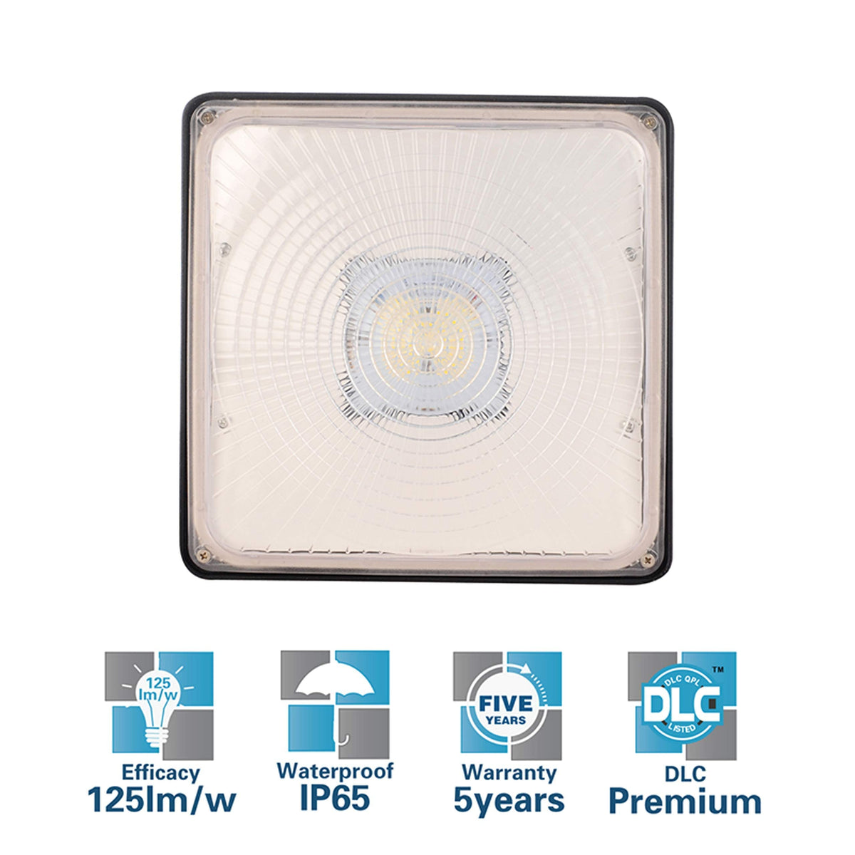 Our Canopy Light Is Special Designed For North American Market, Philips The Best Choose For You To Replacing Traditional Hps/Hid Bulbs. Excellent Lampshade Design, Greatly Improve The Light Utilization And Evenness. Heavy-Duty Die-Casting Aluminum Structure For High Conductivity And Stable Performance. Heat-Sink Is Integrated Into Design, Providing Excellent Heat Dissipation. Mounting Bracket: Suitable For J-Box Mounting, And Easy For Installation. 1/2 Inch Threaded Hole: Support Wires Coming From The Hole For Easier Wire Connections. Save Energy And Money, Reduce Your Electronic Bill By Up To 70% ~ 80%. Specifications Power: 70W Led Chips Led Efficacy: 125Lm/W Luminous Flux: 5625Lumens Cct: Daylight 5000K Power Supply: Fcc Ul List Driver Input Voltage: Ac110-277V Ingress Protection: Ip65 N.W.: 5.52 Lb G. W.: 6.62 Lb Product Dimention: 9.53*9.53*3.15 Inch Packing Size: 11.8*11.8*5.1 Inch Common Applications Of Led Canopy Light Fixture: Garages, Workshops, Utility Rooms, Storefronts, Sheds, Barns, Porches, Driveway Canopy, Underpasses, Loading Docks, Warehouses, Entryways About Us: We Are Professional In Manufacturing Led Canopy Light, Led Wall Pack Light, Led Shoebox Light, Led Highbay Light, Etc. Mainly Focus On The North American Market And Focus On Creating The Best Lighting For You.