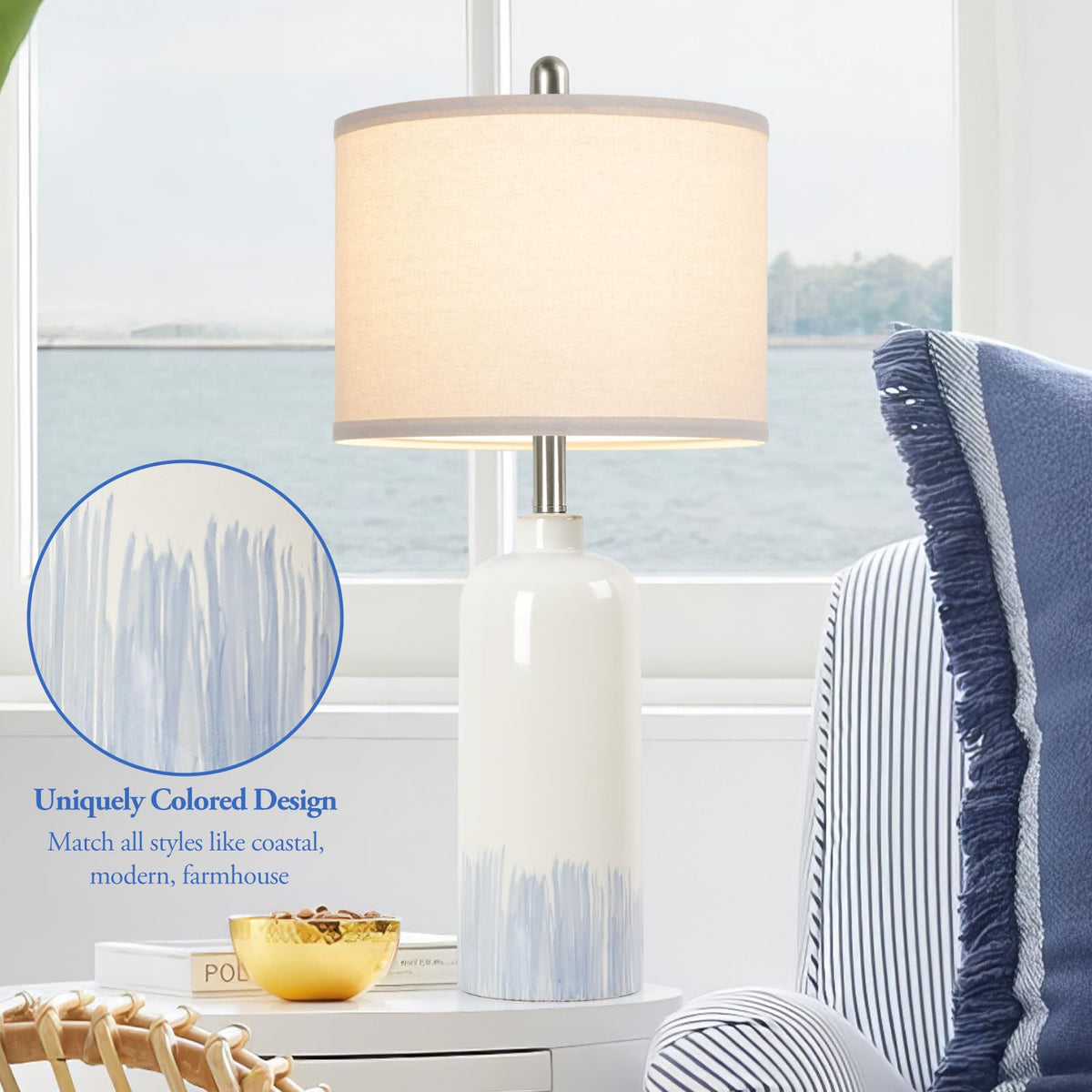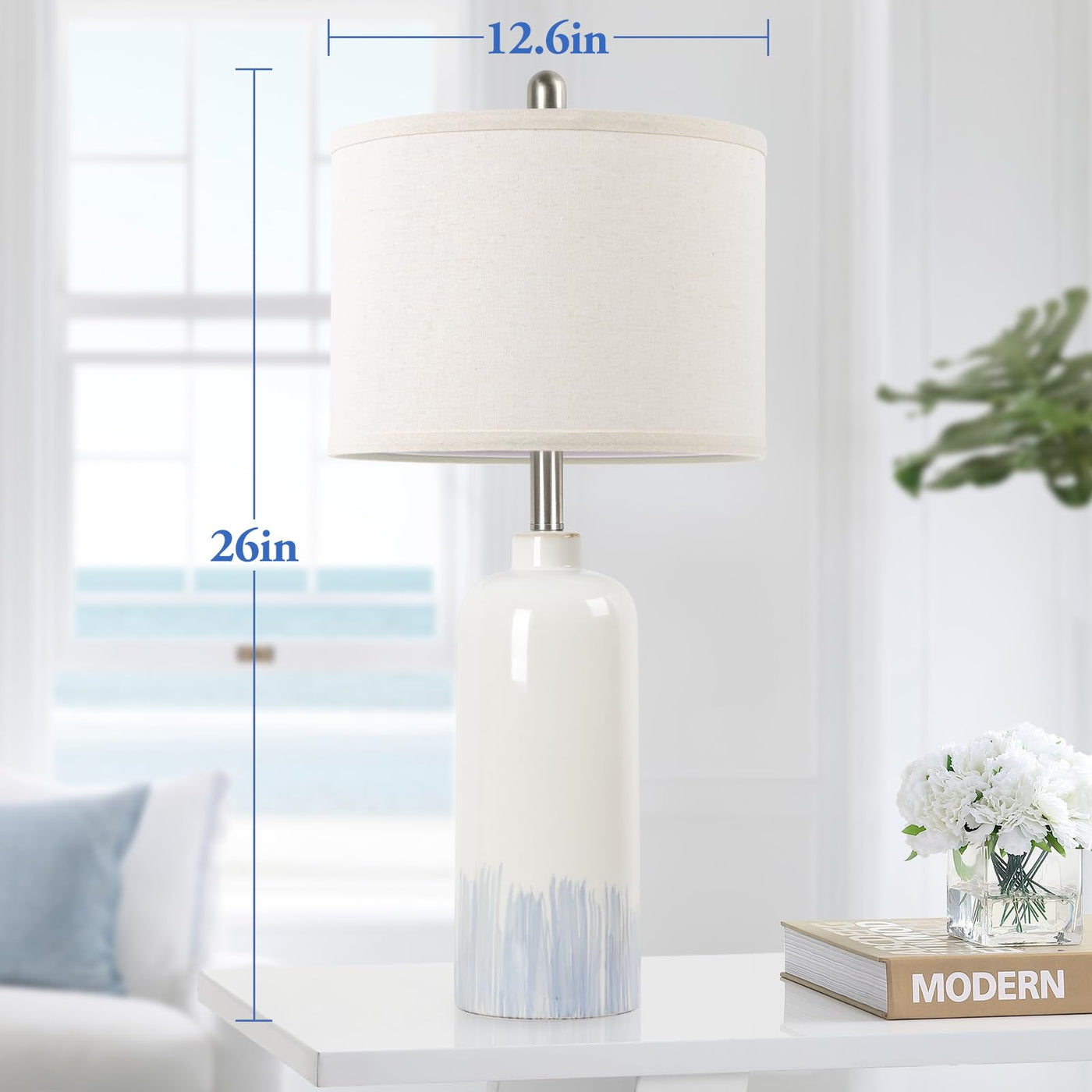 Sucolite 26'' Ceramic Table Lamps Set Of 2, Coastal Living Room Table Lamps With Cream Fabric Shades, Large Modern Bedside Lamps