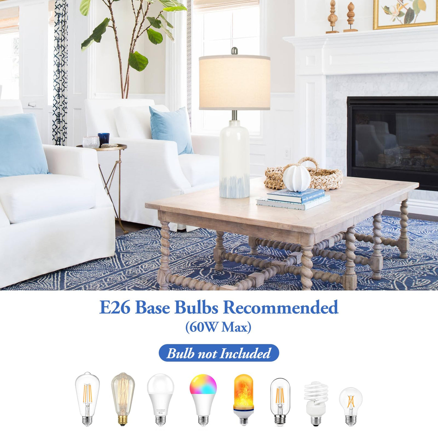 Q: What type of bulbs are compatible with the Sucolite table lamps?A: The Sucolite table lamps require standard E26 base bulbs, which are compatible with LED, CFL, and incandescent bulbs. The maximum wattage for these lamps is 60W, allowing you to choose different bulbs to create the desired ambiance in your space.