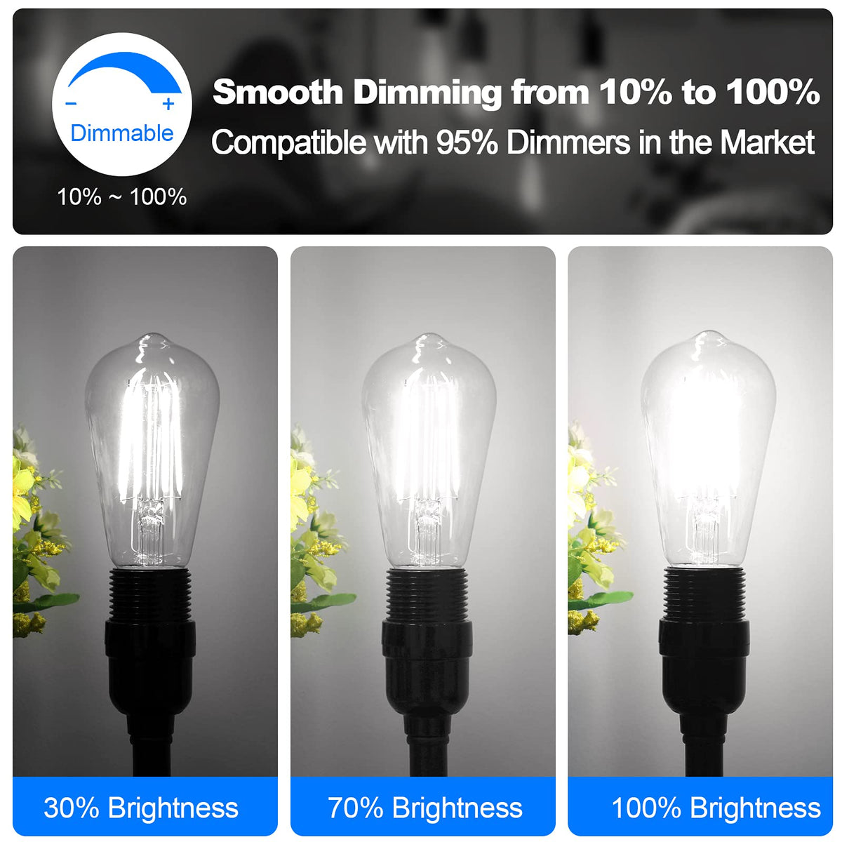 ???Upgraded Dimmable Function?Our vintage LED Edison bulbs feature advanced dimming technology, allowing you to customize brightness levels from 10% to 100% to create the perfect ambiance for any occasion.