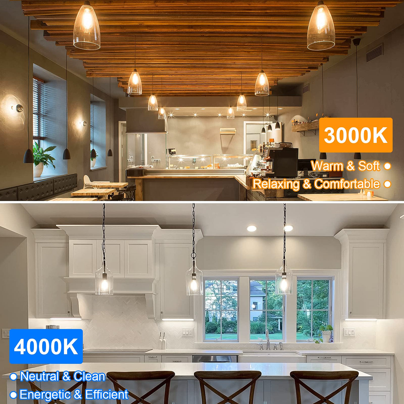 Q: What is the color temperature of the light emitted by these bulbs?A: These bulbs emit a daylight white light at a color temperature of 4000K, providing a bright and clean illumination suitable for various settings like kitchens, bathrooms, and living rooms.