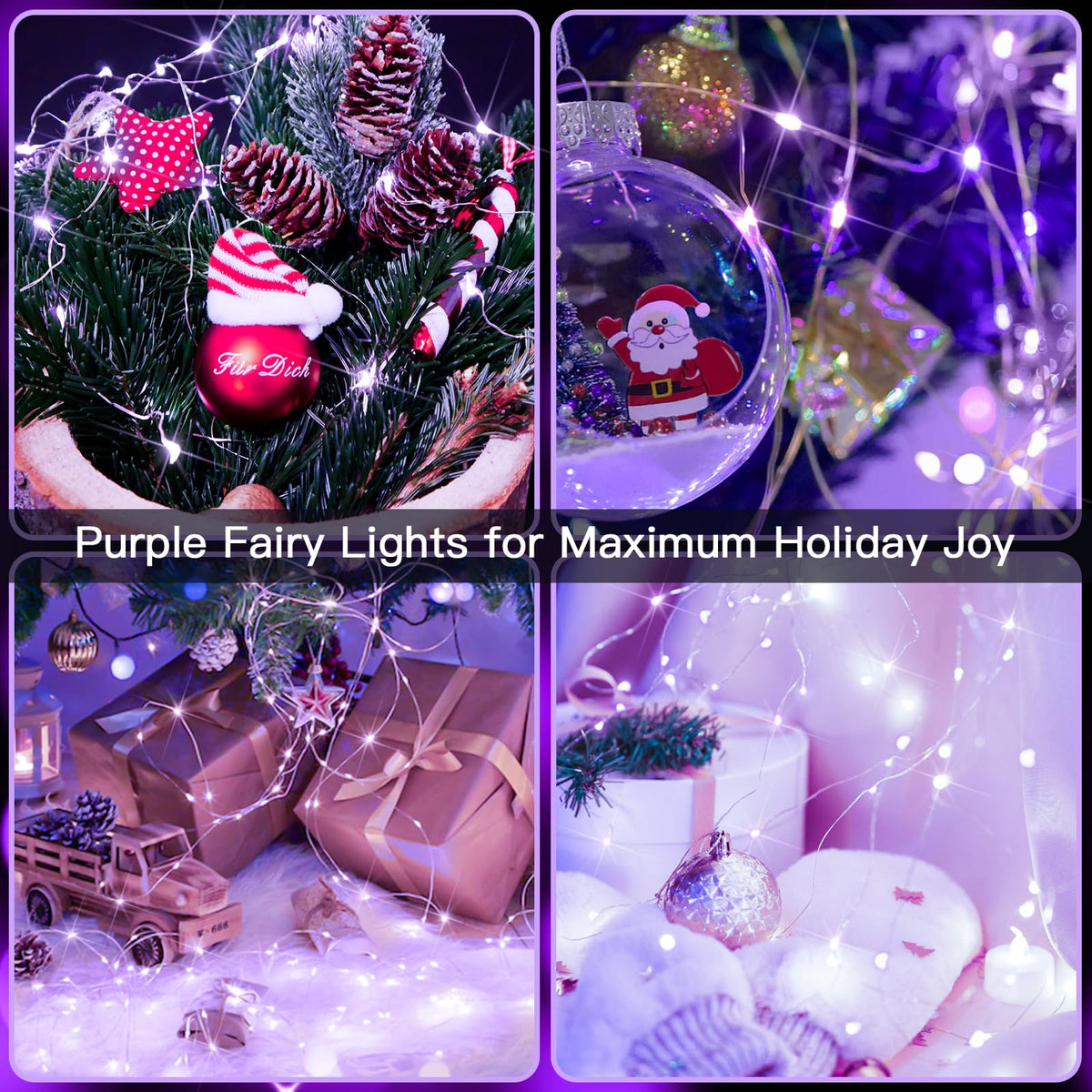 Suddus Christmas Fairy Lights Outdoor Waterproof, 66Ft 200 Led Twinkle Lights Battery Operated, Purple Fairy Lights For Bedroom, Backyard, Porch, Home, Window, Yard, Garland, Party Decorations