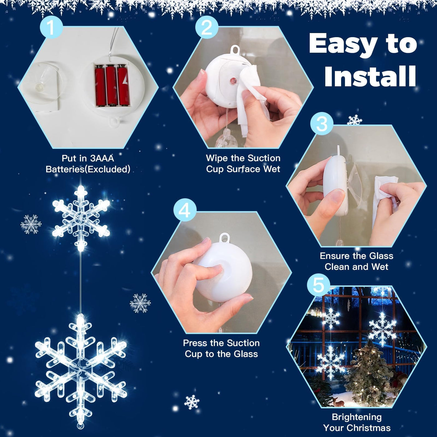 Suddus Christmas Window Lights Decorations, 2Pcs Battery Operated Snowflake Lights With Suction Cup, Timer & 2Modes Hanging Christmas Lights For Tree Indoor, Holiday, Fireplace, Wall, Cool White