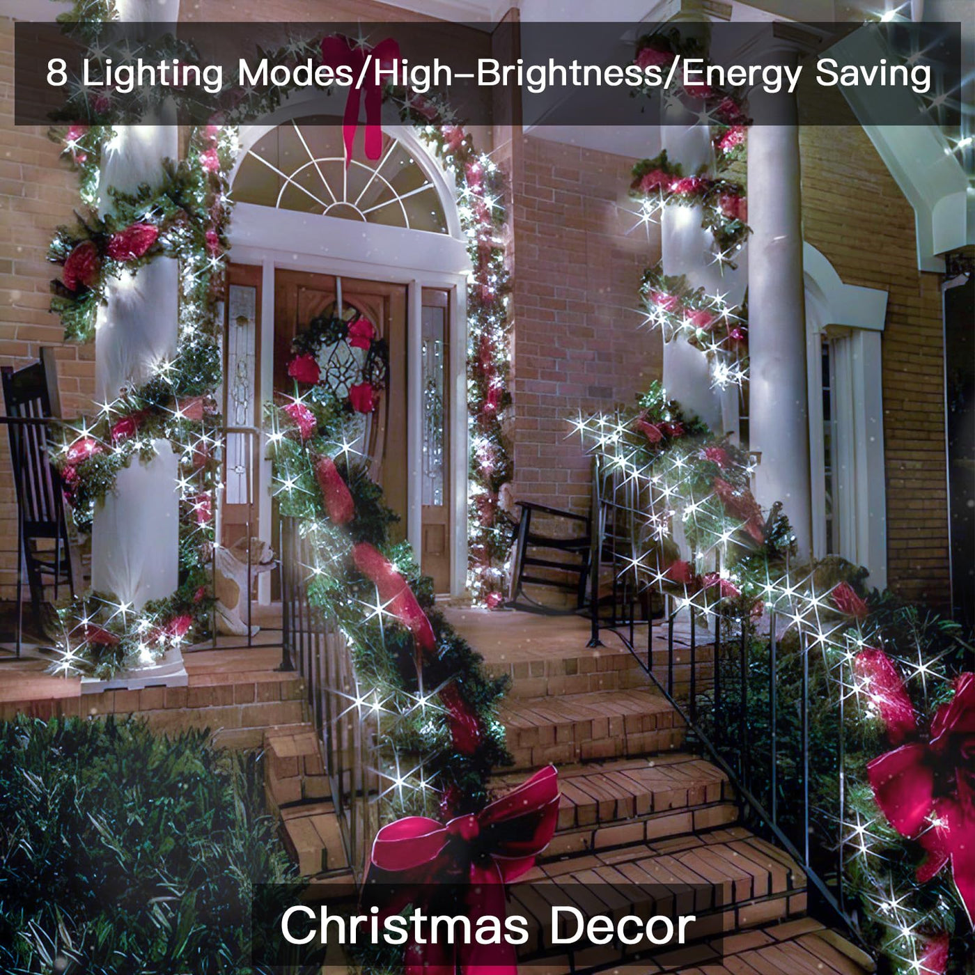 Suddus Solar Fairy Lights Outdoor Waterproof, 2 Pack 33Ft 100 Led Solar Twinkle Lights, 8 Modes White Solar Christmas Lights For
