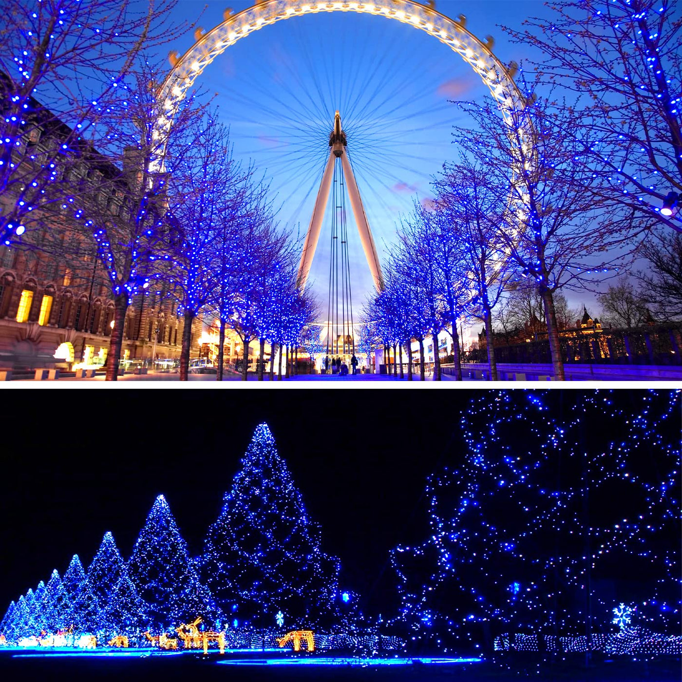 Q: How long is the string of lights and how many LEDs does it have?A: The string is 33 feet long and features 100 blue LEDs spaced 4 inches apart, providing a cozy glow for your decorations.