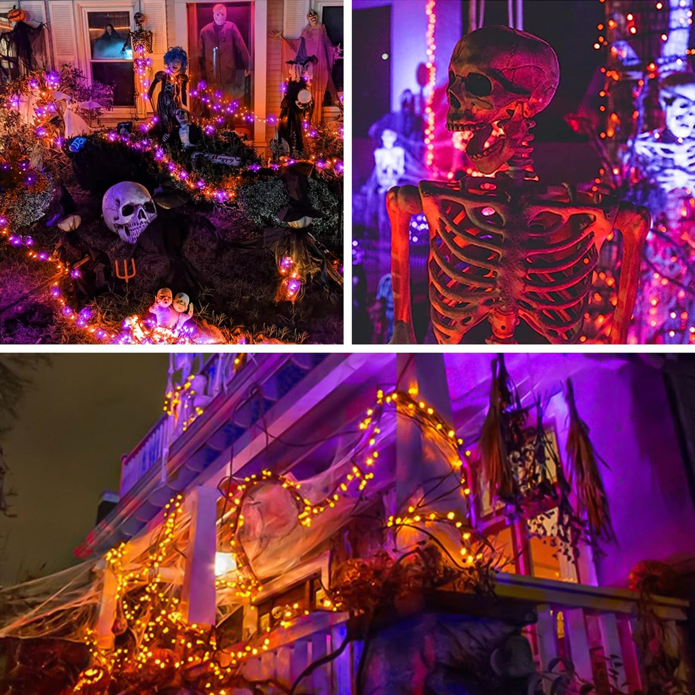 Sukesou Orange Purple Halloween String Lights Outdoor 100Led Battery Operated Fairy Lights With Waterproof Remote Timer String Lights For Garden Party Holiday Halloween Décor