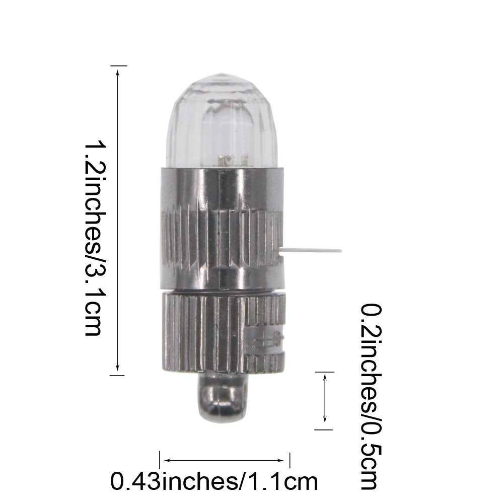 Disposable party lights with a built-in loop for hanging. Powered by 3 replaceable batteries(included) in each light. Measures 1/2-inch diameter by 1-1/4-inch length. Perfect for decoration of parties, weddings, birthdays, hotels, anniversaries, restaurants, christmas, halloween, lounge, bars and so on.