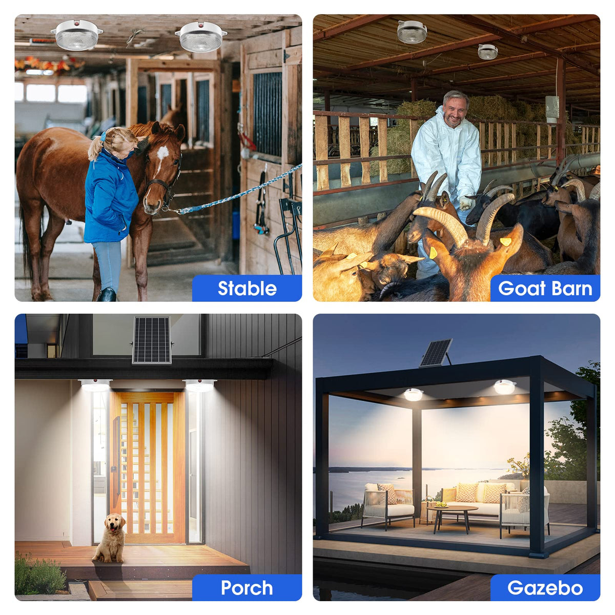 Q: Is the SunBonar Solar Ceiling Light suitable for indoor and outdoor use?A: Yes, the SunBonar Solar Ceiling Light is designed for both indoor and outdoor use, making it ideal for various locations such as sheds, barns, patios, and garages. It has an IP65 waterproof rating, ensuring durability in outdoor conditions.