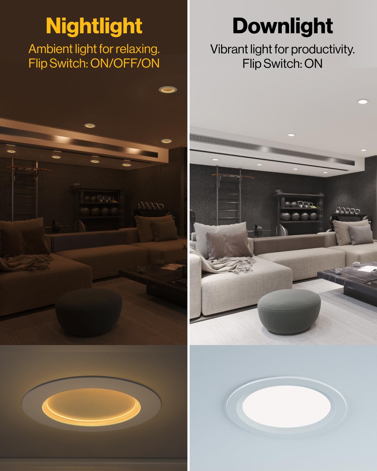 Q: Can I use the night light feature independently of the main downlight?A: Yes, the night light feature can be activated by flipping the light switch twice, allowing you to enjoy a warm 2000K glow independently from the main downlight, which is also dimmable.