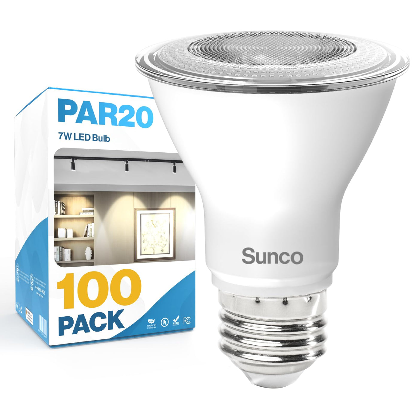 Sunco 100 Pack PAR20 LED Bulbs, Flood Light Bulb Outdoor, 500 LM, 7W (50W Equivalent), 2700K Soft White, E26 Medium Base, Dimmab