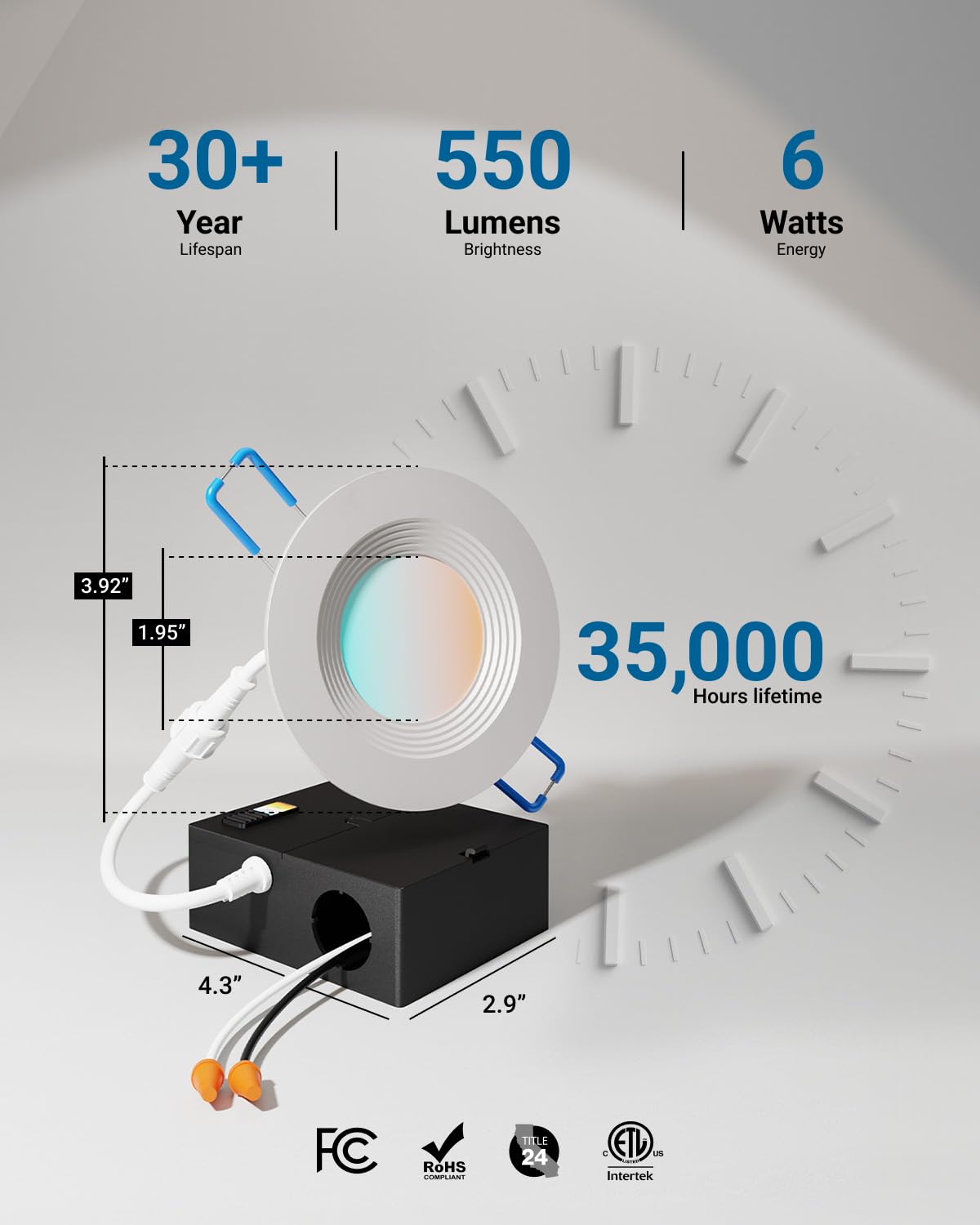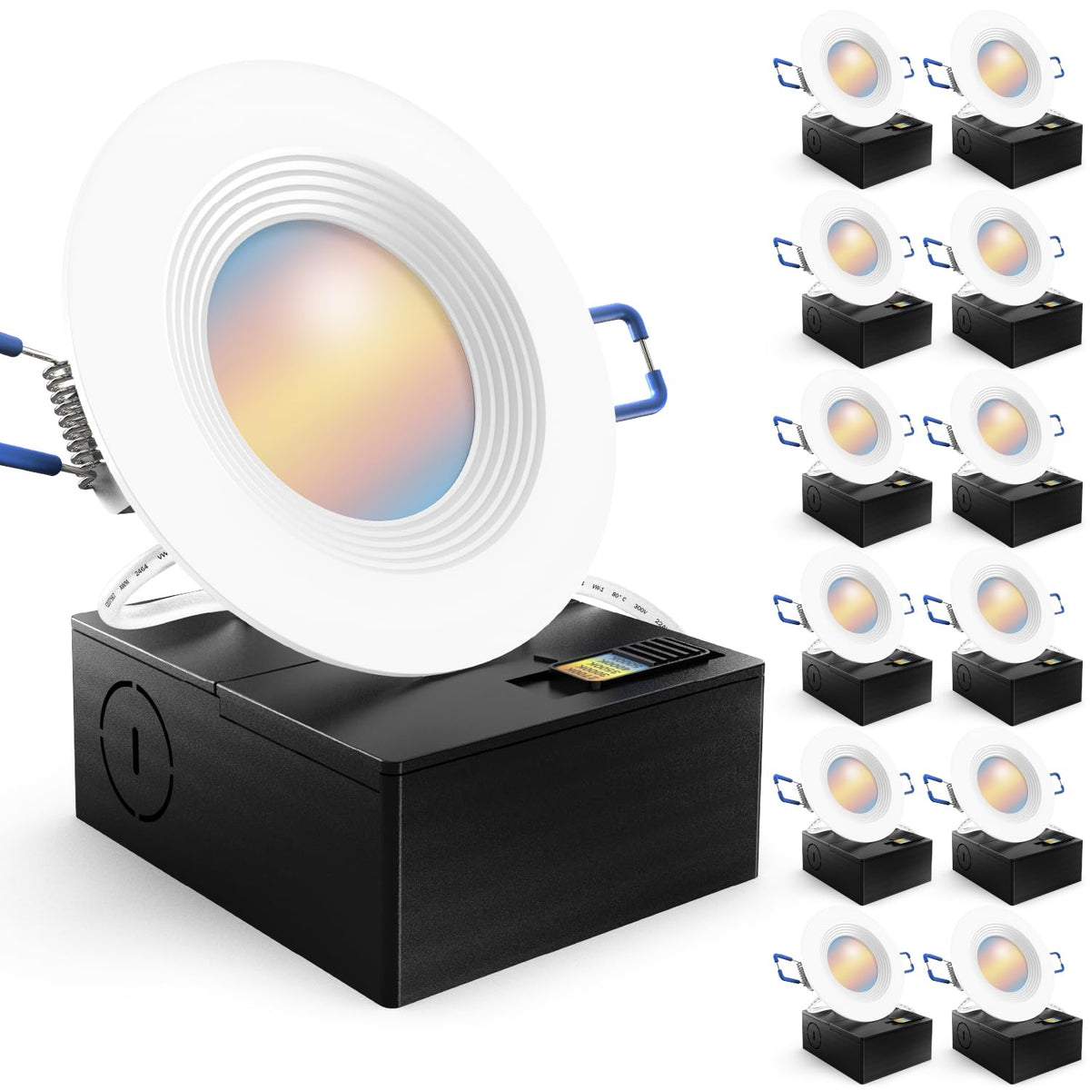 Q: What are the benefits of using the Sunco 12 Pack 3 Inch Recessed Lighting?A: The Sunco 12 Pack 3 Inch Recessed Lighting offers multiple benefits including energy efficiency, as each light is equivalent to a 50W incandescent bulb while only using 6W of energy. Additionally, the selectable CCT feature allows you to choose from five different color temperatures (2700K to 6000K) to suit various moods and settings. Its slim, canless design simplifies installation and is ideal for a variety of ceiling types.