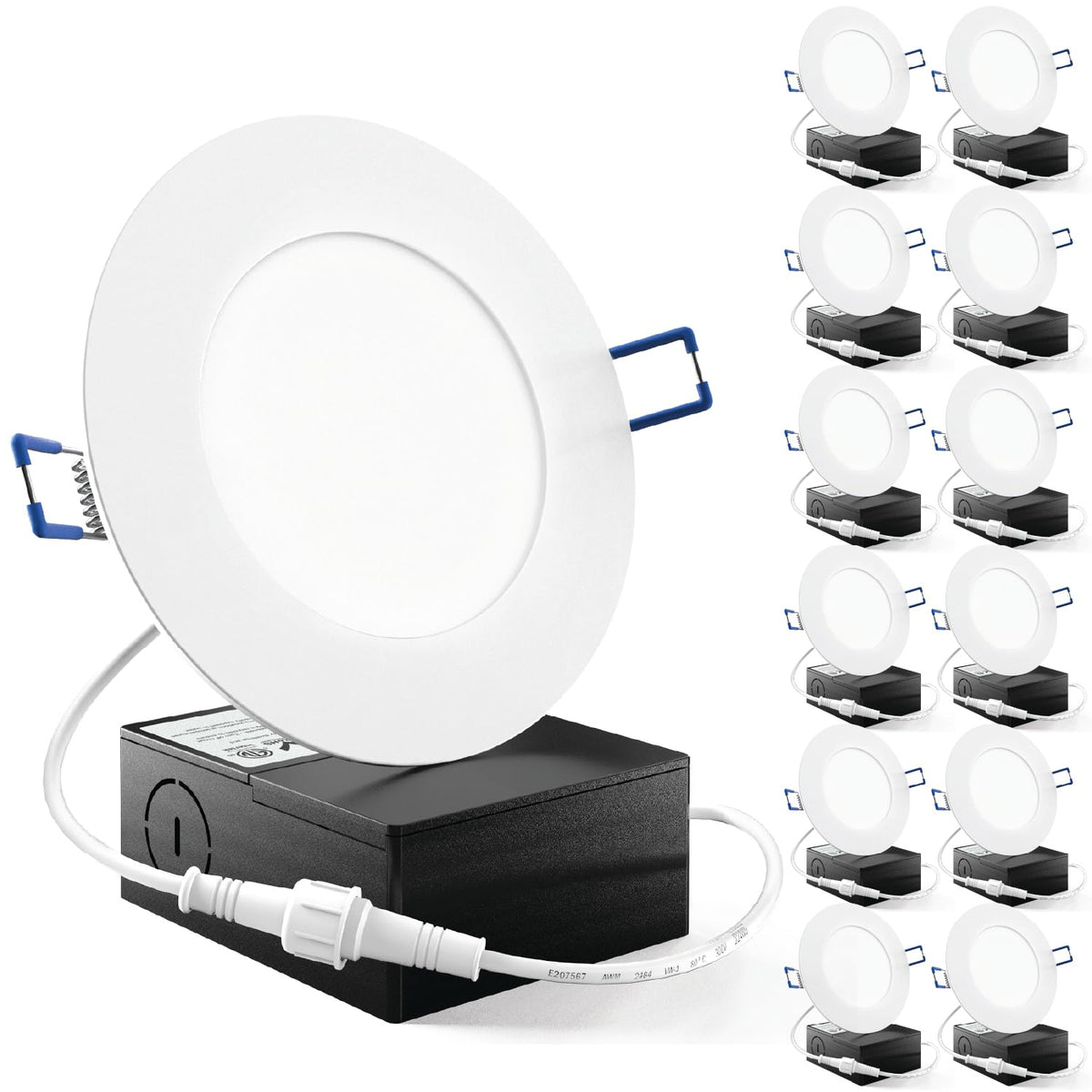 Q: What are the benefits of using Sunco Lighting 12 Pack 4 Inch Ultra Thin LED Recessed Ceiling Lights?A: These LED recessed ceiling lights offer energy efficiency with a power consumption of only 10W while providing equivalent brightness to a traditional 60W bulb. They are also dimmable, allowing you to adjust the brightness according to your preference, and feature a sleek, wafer-thin design that blends seamlessly with your ceiling.
